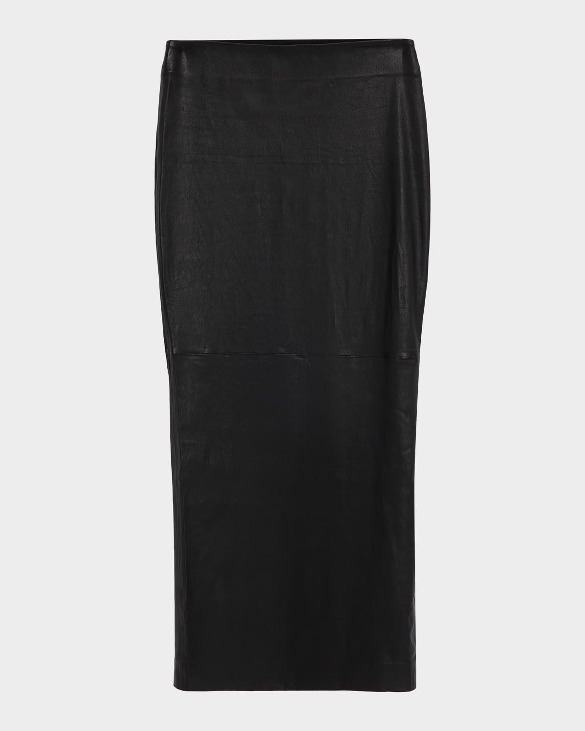 Constructed from panels of ultrasoft, handstitched French leather, this maxi tube skirt by SPRWMN is a lightweight and breathable closet essential Highrise waistband Centercut back slit Hem falls below the knee Pencil style Slipon style Leather Imported