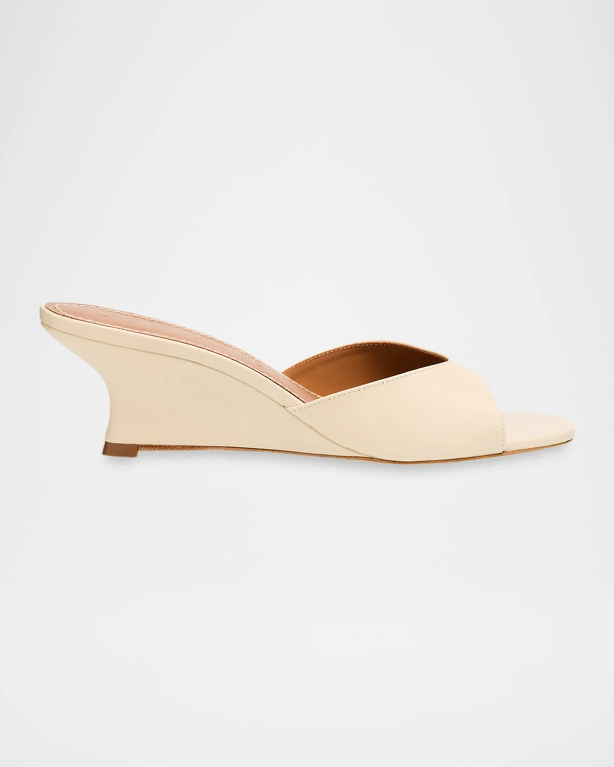 An opentoe mule crafted in smooth leather, the "Brigitte" by STAUD is an essential low heel for versatile dressing 2.36 in / 60 mm covered wedge heel Open toe Easy slide style Leather outsole Spot clean Made in Brazil