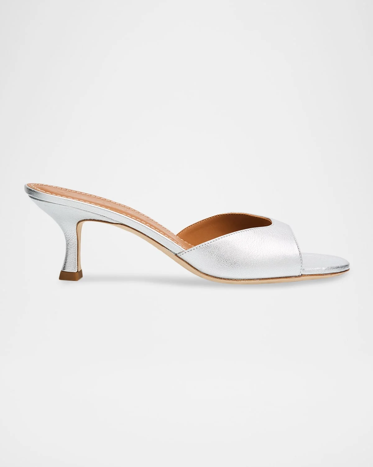 An opentoe mule crafted in metallic leather, the "Brigitte" by STAUD is an essential low heel for versatile dressing 2.36 in / 60 mm covered kitten heel Open toe Easy slide style Leather outsole Spot clean Made in Brazil