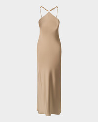 - Constructed of body-skimming satin, the Cadence dress by STAUD is finished with tonal strap beading - Halter neckline - Sleeveless - Center-cut back vent - Full length - Invisible back zipper - Acetate/polyester - Imported