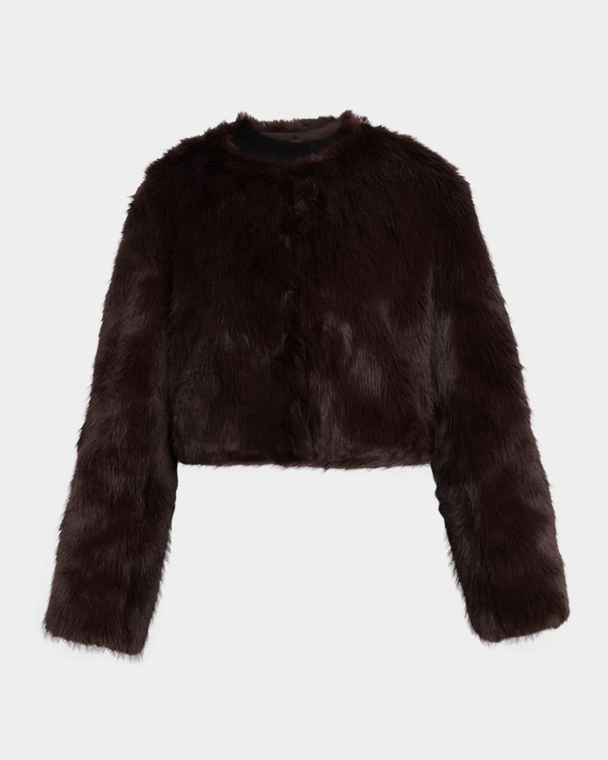 STAUD's "Casimira" jacket is designed in plush faux fur (polyester) in a cropped silhouette Collarless neckline Long sleeves Relaxed fit Cropped hem Polyester Dry clean Imported