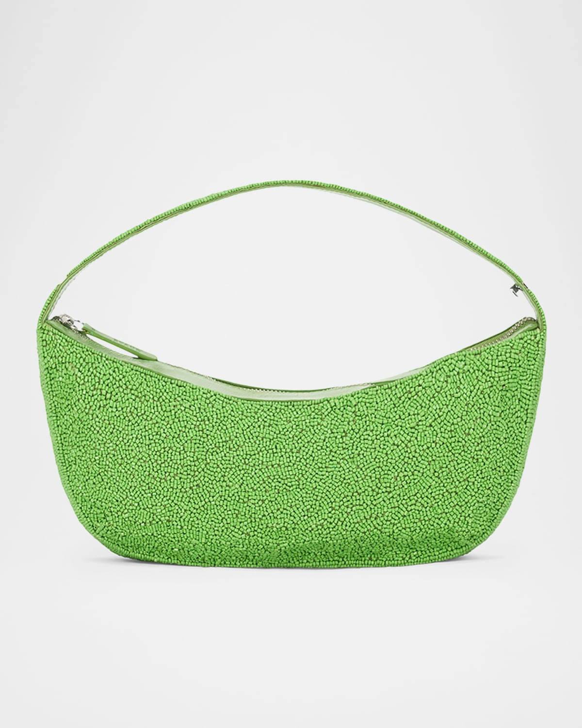 - STAUD "Demy" shoulder bag in beaded fabric and leather - Shoulder strap, 6" drop - Can be worn as a top handle or shoulder bag - Zip top closure - Interior, one zip pocket - Approx. 6"H x 13.5"W x 5.8"D - Modacrylic - Spot clean - Imported