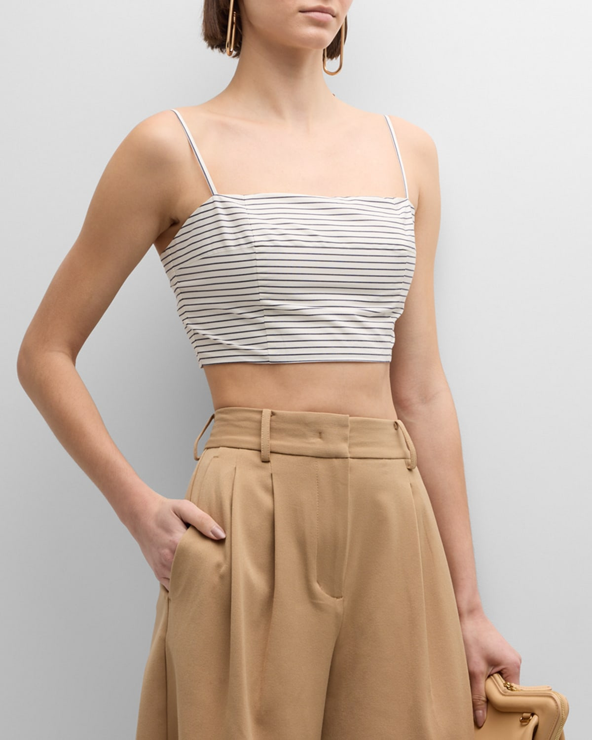 STAUD "Federico" crop top in pinstripe cotton poplin Square neckline Adjustable straps Princess seams Fitted Concealed back zip closure Cotton/elastane Imported