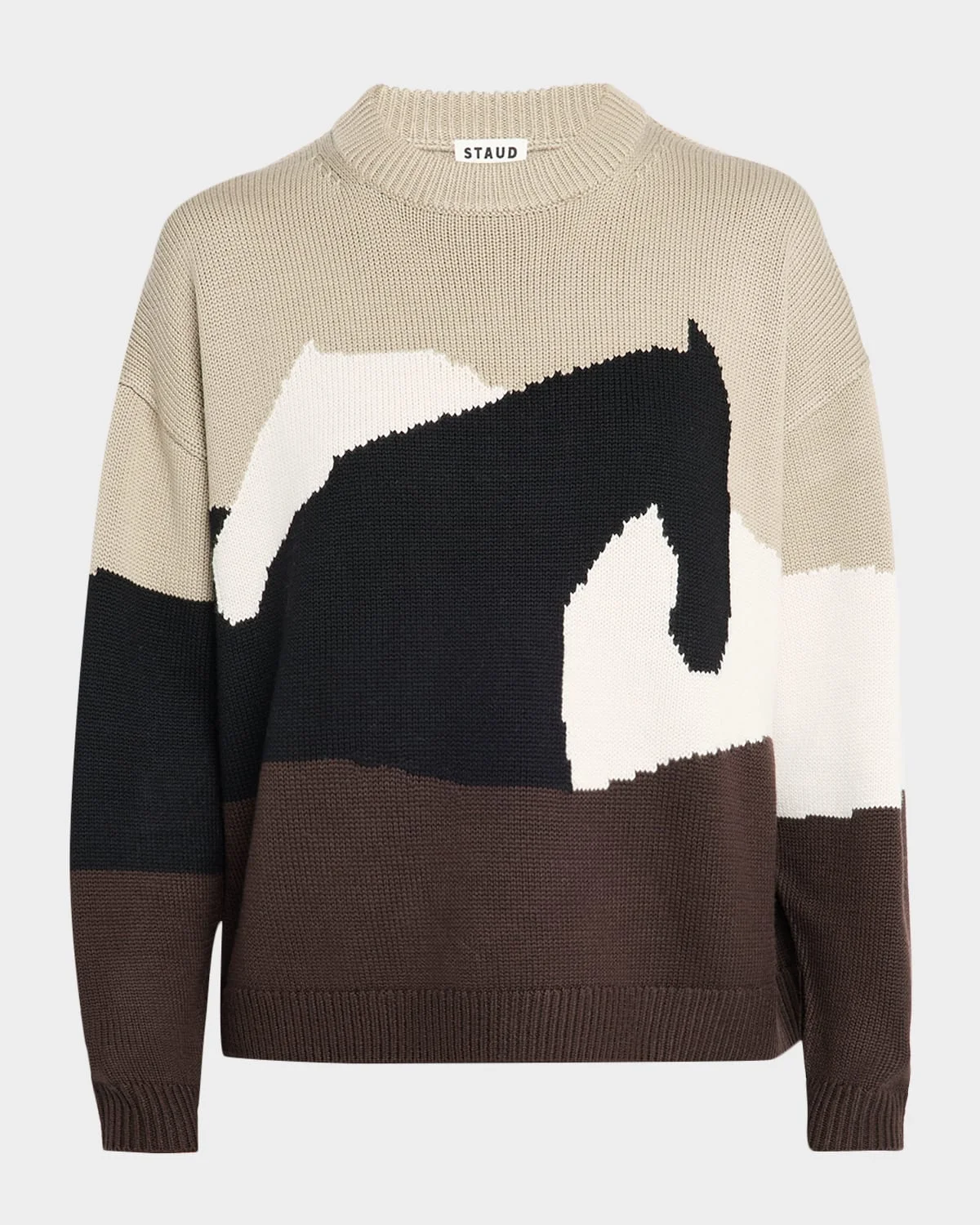 Staud's crewneck "Giada" sweater, intarsiaknit from soft merino wool, features a horse motif and ribknit trim. Approx. 23.5"L from shoulder to hem Crew neckline Long sleeves Relaxed fit Hip length Pullover style Merino wool Dry clean Imported