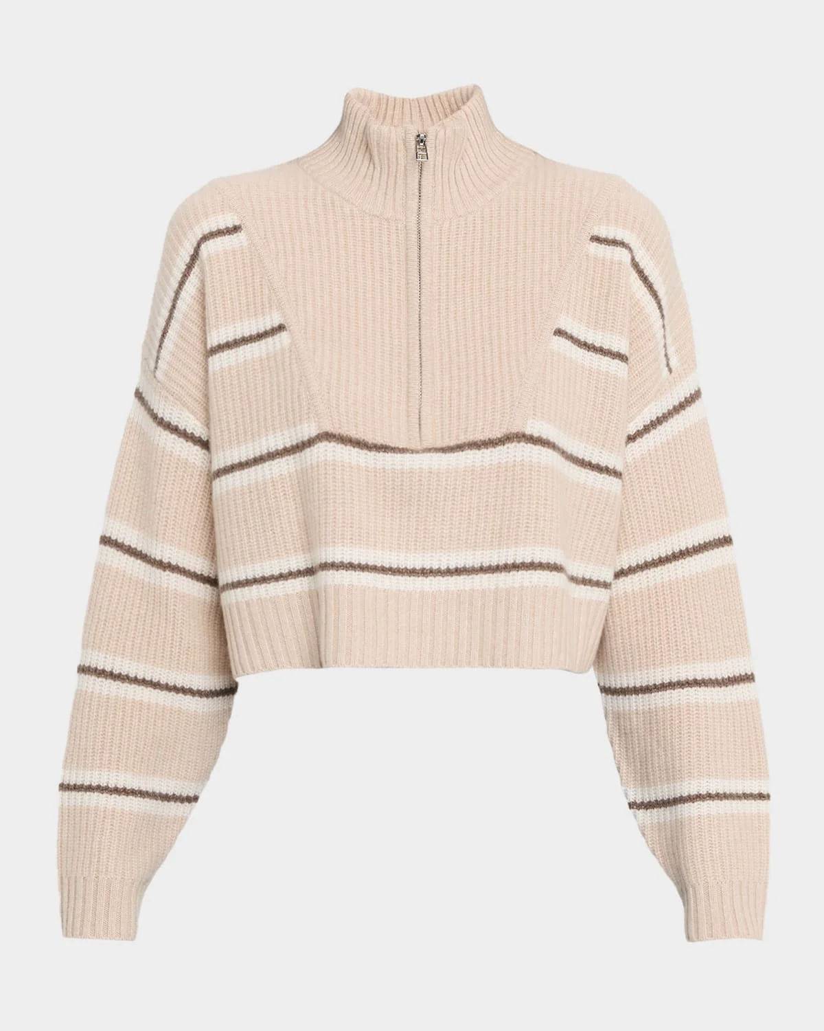 An elevated take on a signature STAUD silhouette, this "Hampton" sweater is spun from plush, heavy-gauge cashmere and defined by timeless horizontal stripes. Stand collar; half-zip front Dropped shoulders Long sleeves Relaxed fit Cropped hem Pullover style Cashmere Hand wash or dry clean Imported SIZE & FITModel measurements: 5 & apos;10" tallModel is wearing a US size 4/Small