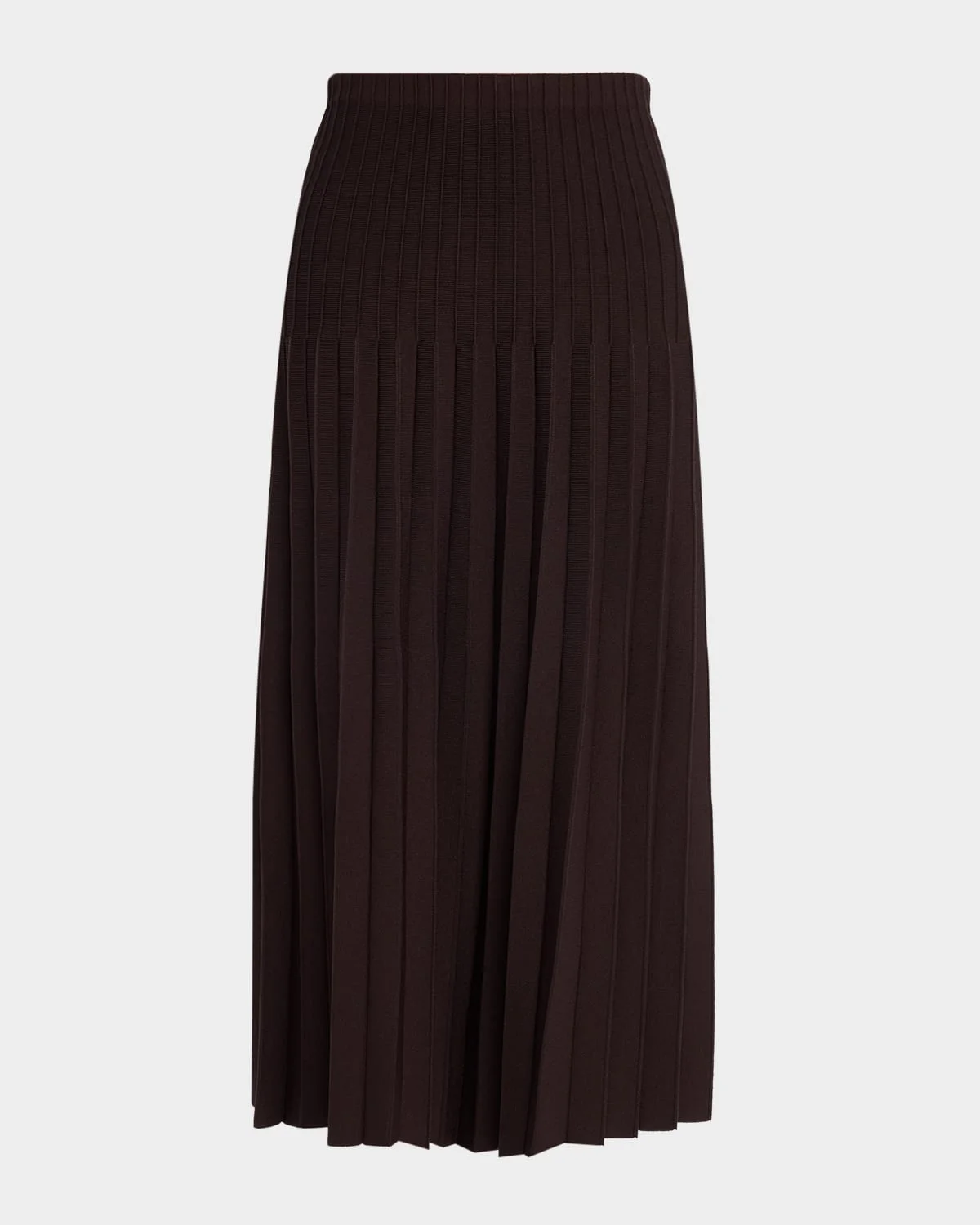 The "Lena" skirt from Staud is cut for a midi length and features a pleated design. This piece is complete with an elasticized waist. Approx. 50"L from waist to hem Highrise waistband Hem falls below the knee Aline silhouette Slipon style Viscose/nylon/spandex Dry clean Imported