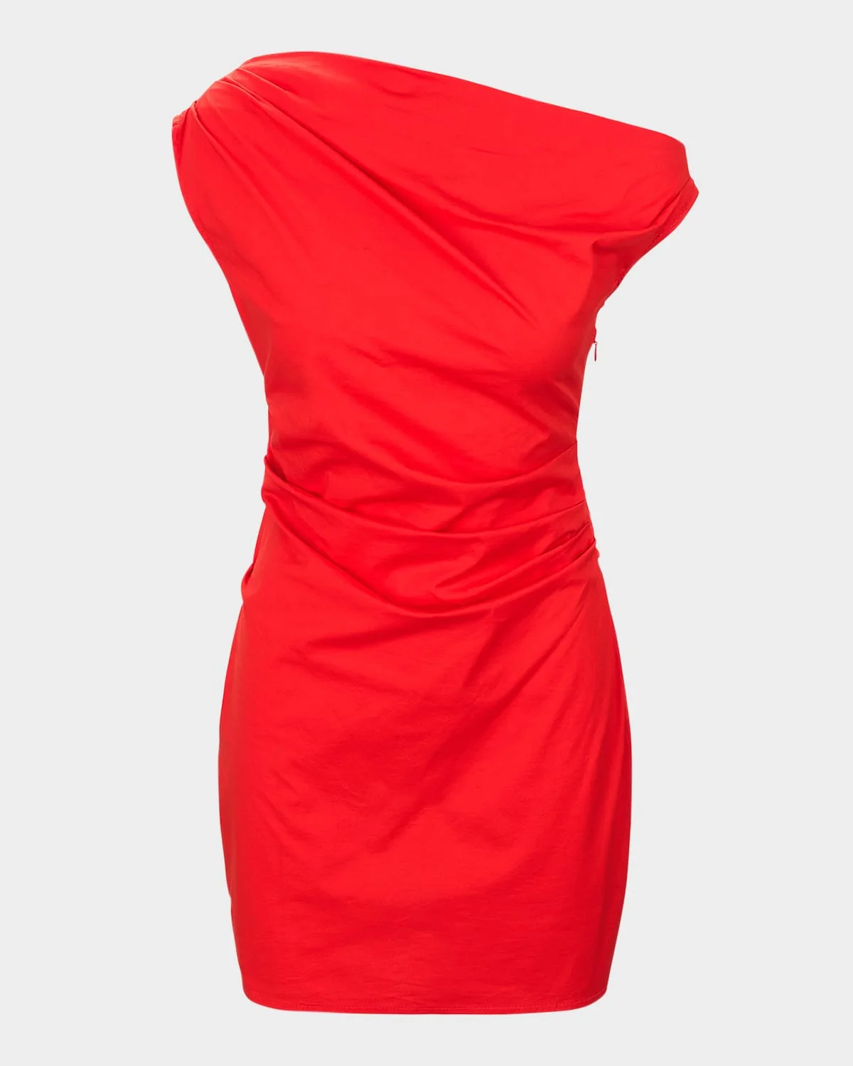 - STAUD "Phare" asymmetric draped dress - One-shoulder neckline - Sleeveless - Hem falls above the knee - Bodycon fit - Invisible side zipper - Cotton/spandex - Imported