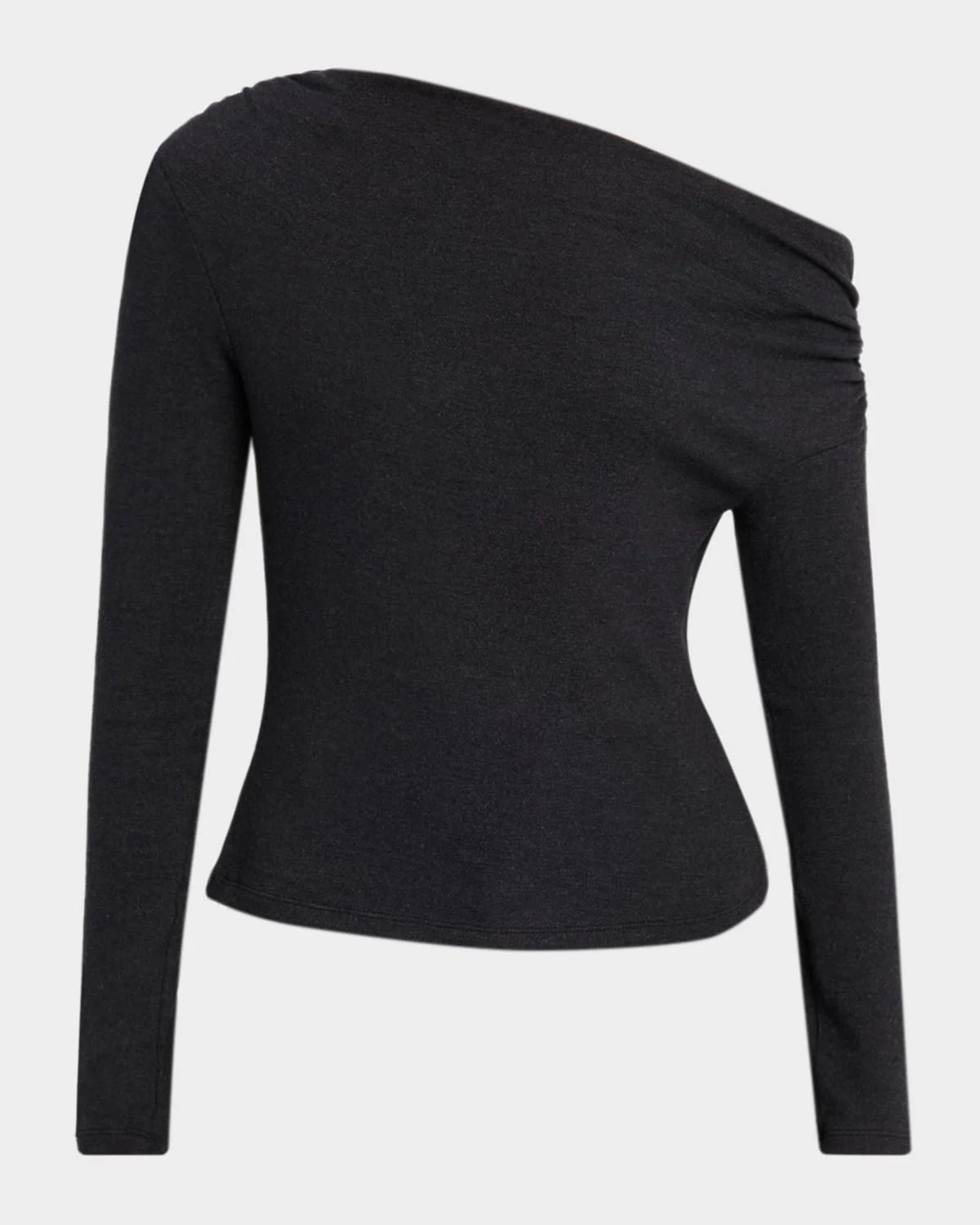 Designed in soft jersey, the "Philomena" top by STAUD features a draped asymmetrical design Oneshoulder neckline Fitted long sleeves; approx. 24"L Slim fit Hip length Pullover style Modal/polyester/spandex Dry clean Imported
