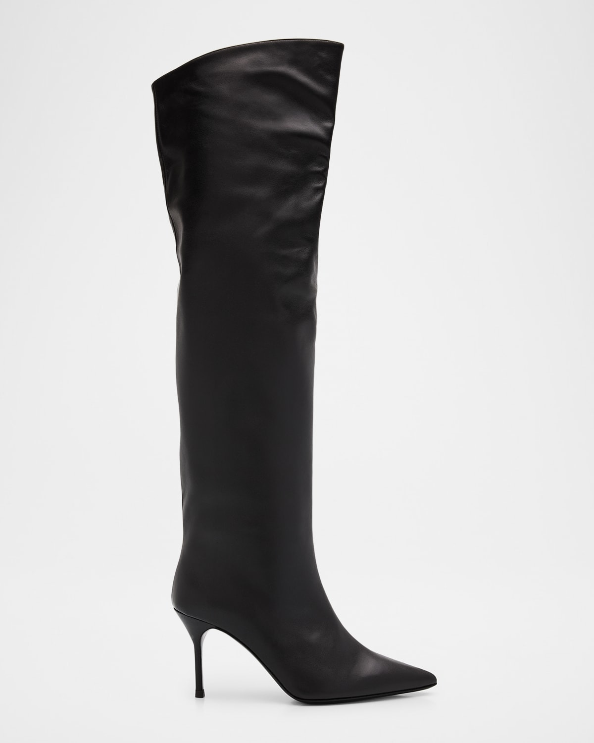 - Crafted from smooth leather in an over-the-knee silhouette, the "Sebastian" boots by STAUD create a leg-elongating streamlined effect - 3.15 in / 80 mm covered stiletto heel - Pointed toe - Pull-on style - Leather outsole - Made in Portugal