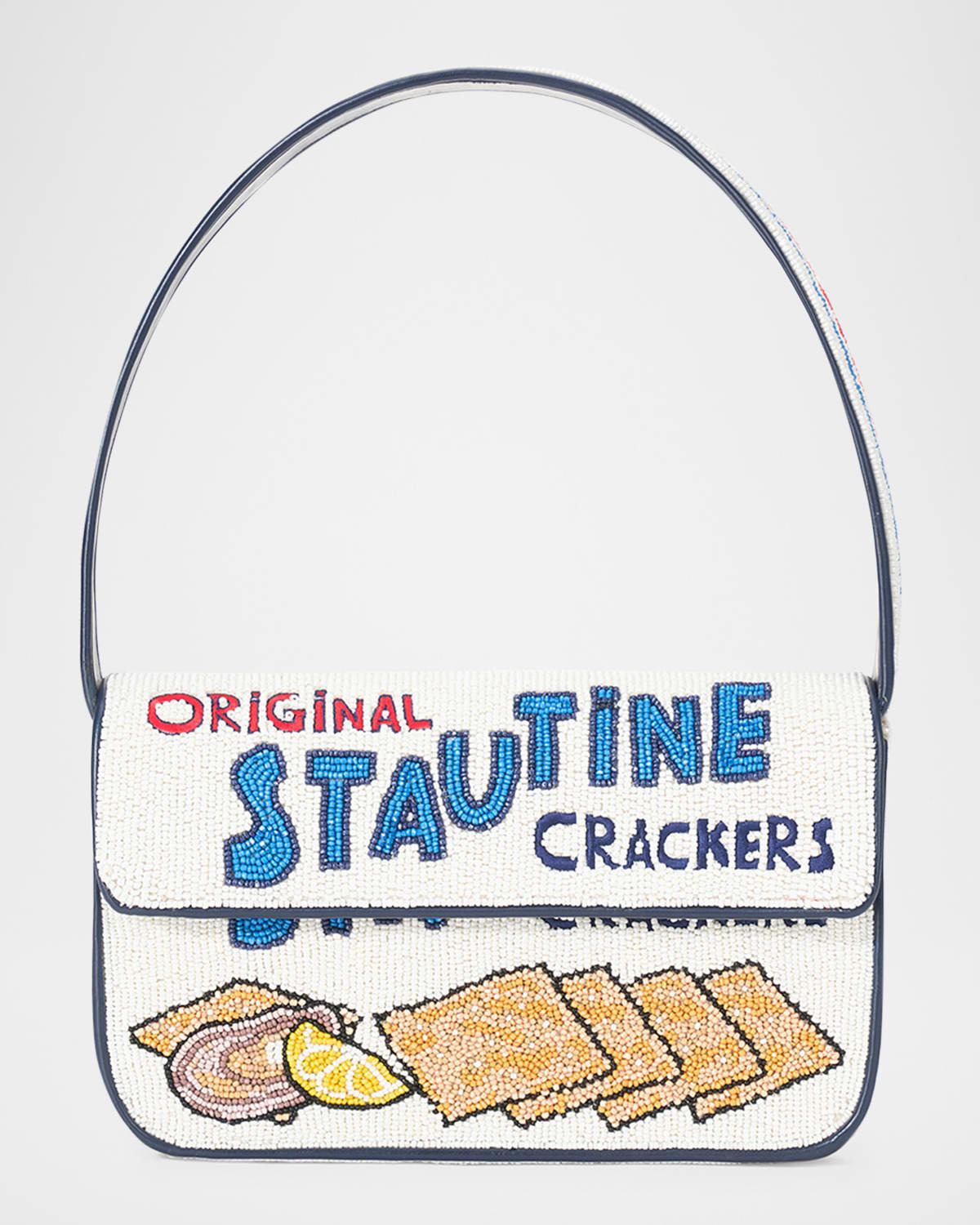 - STAUD "Tommy" shoulder bag in beaded fabric - Shoulder strap - Flap top with magnetic closure - Interior, one zip pocket - Approx. 5.9"H x 9.8"W x 5"D - Modacrylic/leather - Spot clean - Imported