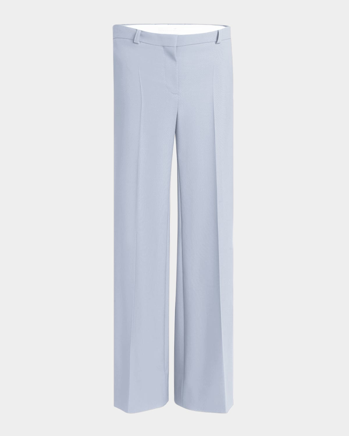 - Stella McCartney suiting trousers offer a sharp tailored fit - Full length - Mid rise sits high on hip - Flare legs - Side slip pockets; back buttoned pockets - Tab/zip fly; belt loops - Zip closure - Wool - Dry clean - Made in Hungary