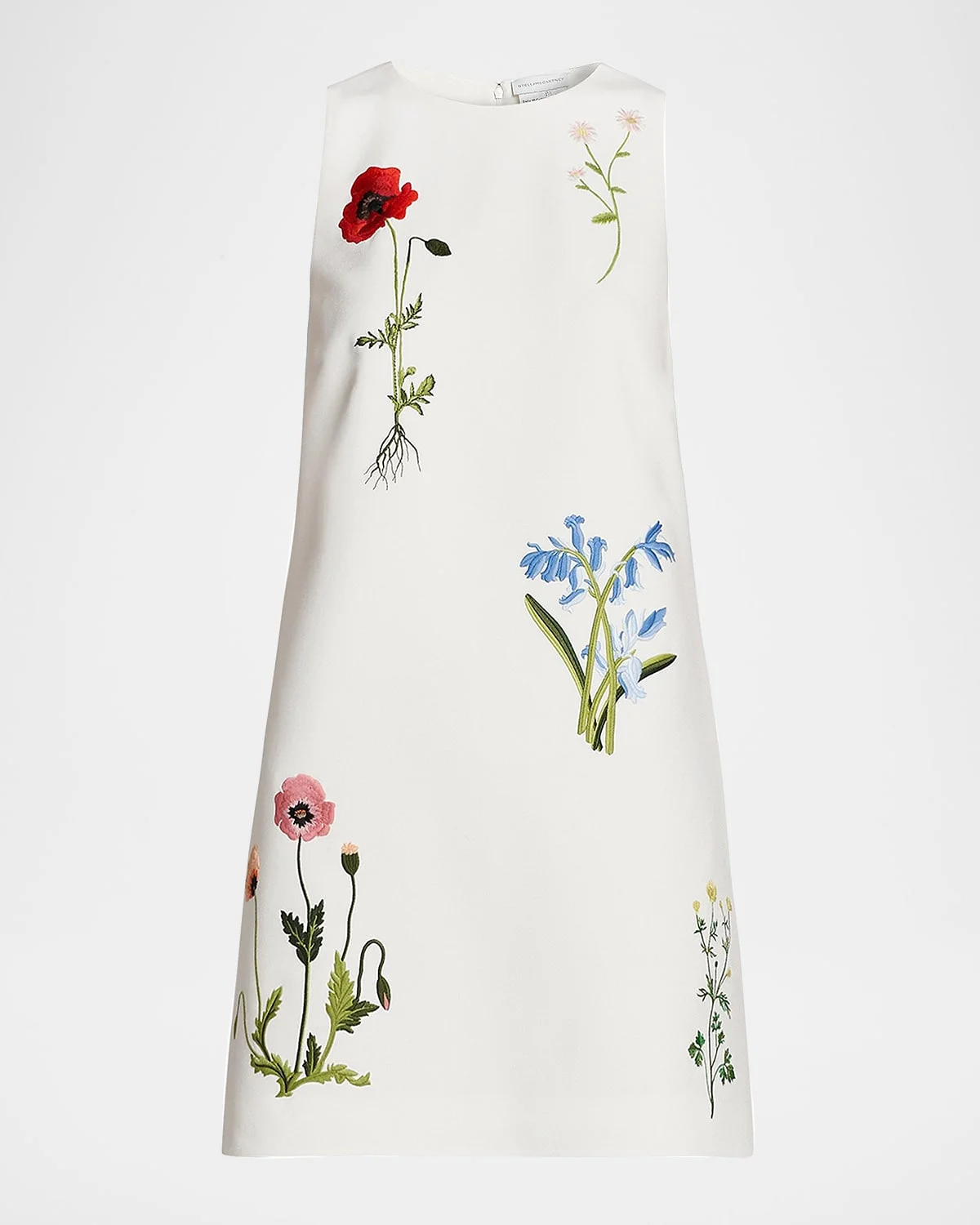 Adorned with floral embroidery, this dress by Stella McCartney is crafted from crepe in a shift silhouette Round neckline Sleeveless Shift silhouette Mini length Invisible back zip Acetate/viscose Dry clean Made in Italy