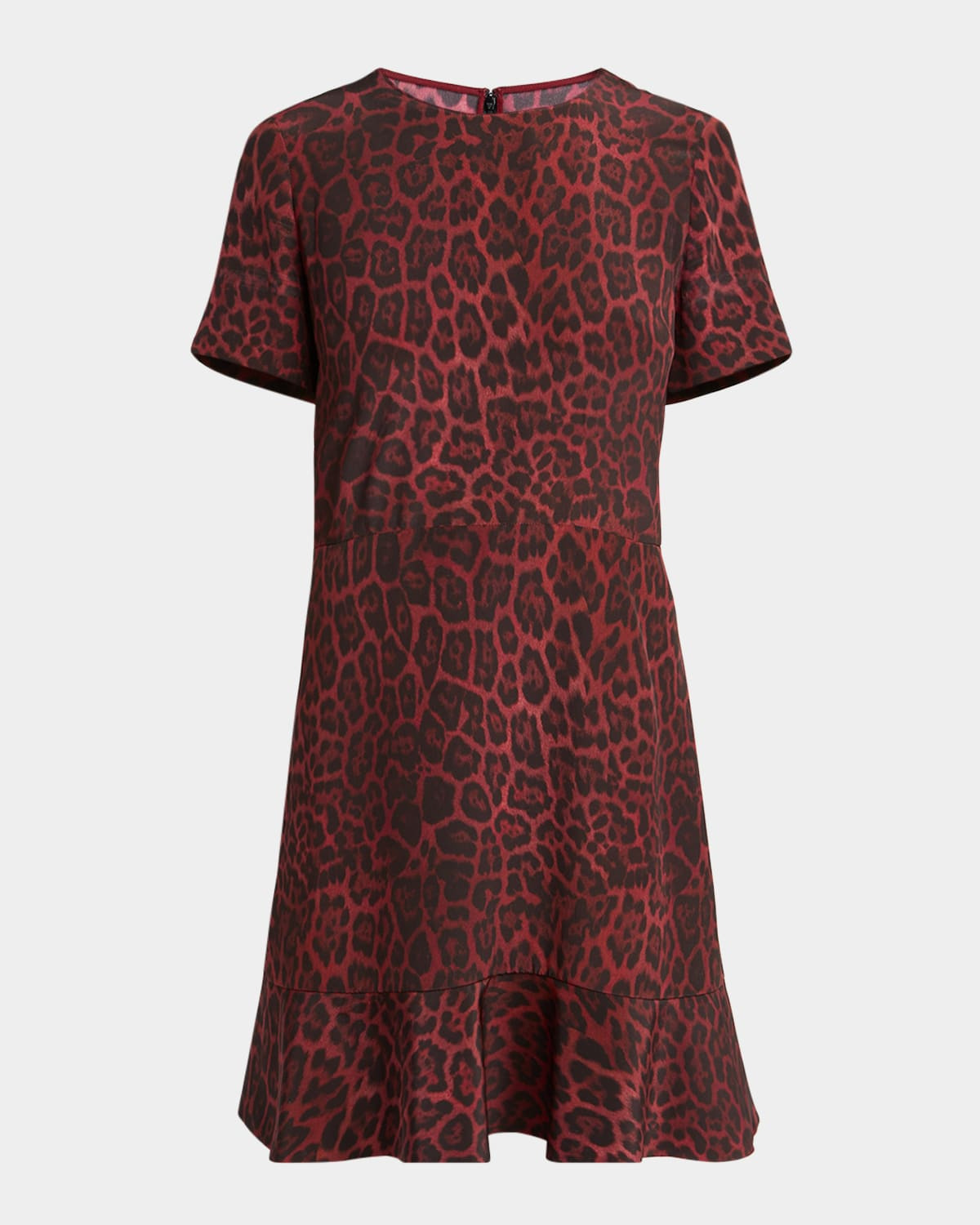 - Stella McCartney leopard print dress combines a striking pattern with a flared hem - Jewel neckline - Short sleeves - Hem hits around the knee - A-line silhouette - Zip closure - Silk - Dry clean - Made in Italy
