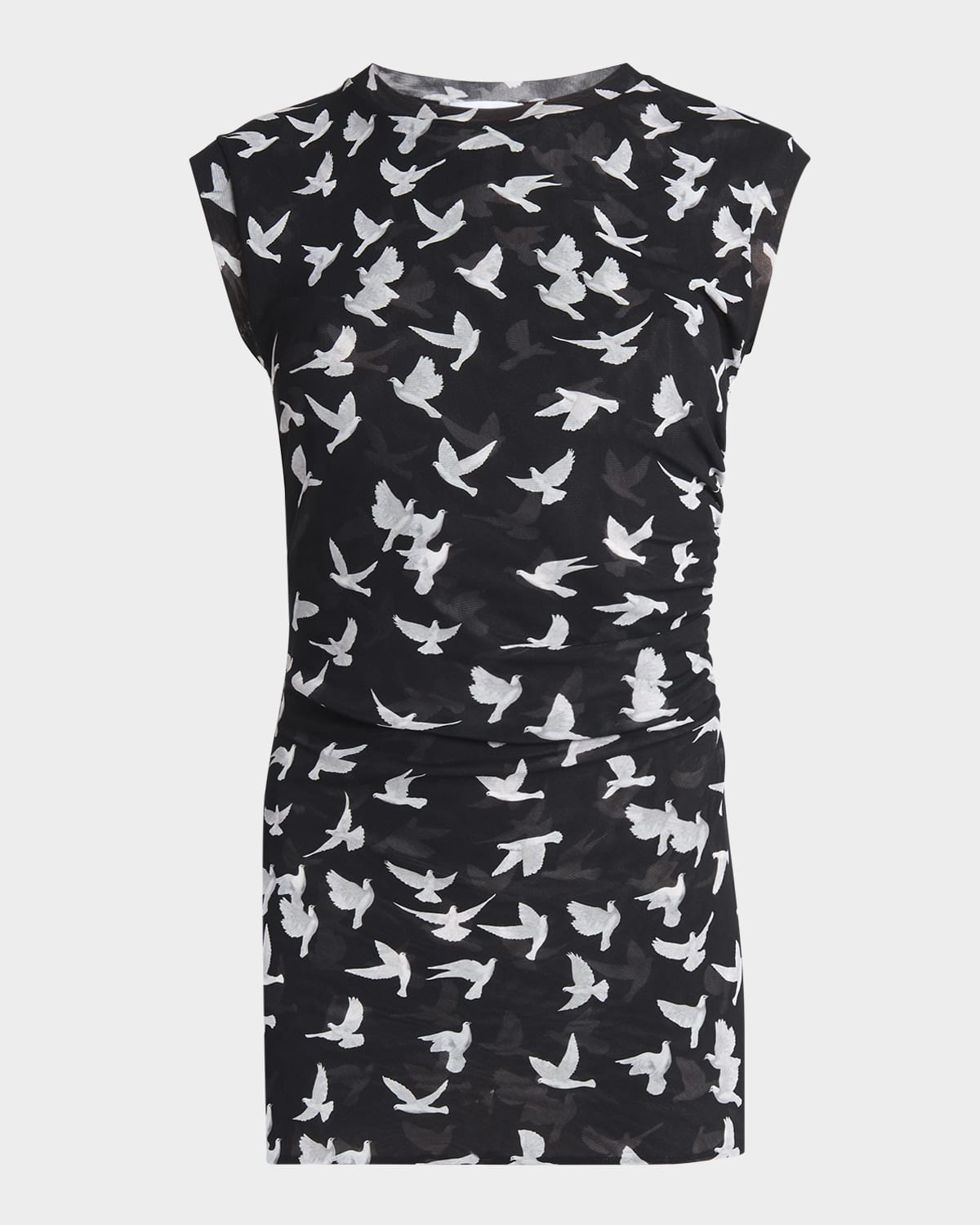 Stella McCartney ruched mesh top in flying bird haze Crew neckline Sleeveless Slim fit Slipon closure Nylon/polyamide Dry clean Made in Portugal