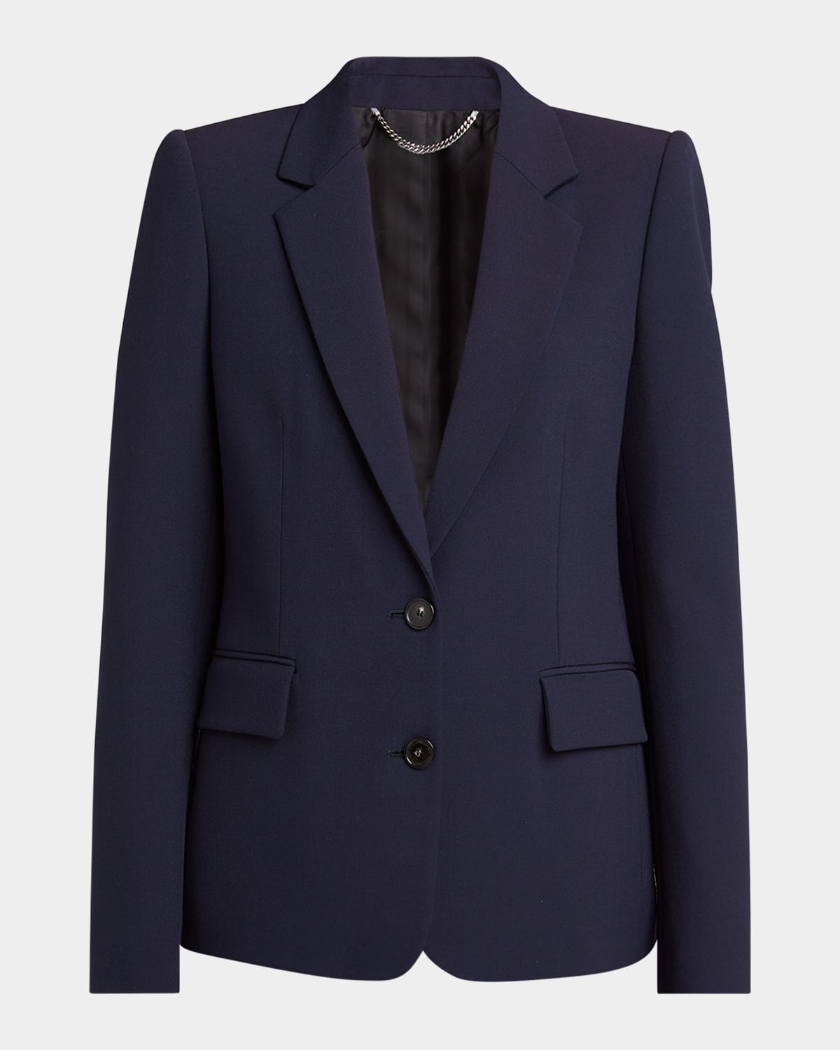 Stella McCartney iconic regular blazer jacket Notch lapels; singlebreasted front Long sleeves; button cuffs Side flap pockets Slim fit Centerback vented hem Wool/elastane Imported