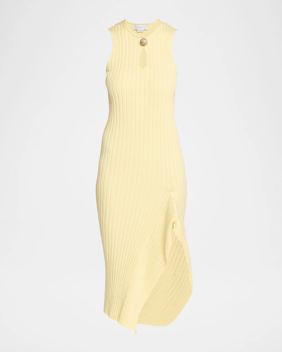 Crafted from cotton wide ribbed knit, this dress from Stella McCartney features a front keyhole detail embellished with a stone button and a curved asymmetric side slit Round neckline; button/keyhole front Sleeveless Bodyskimming silhouette Hem falls below the knee Side slit Slipover style Cotton Dry clean Made in Italy