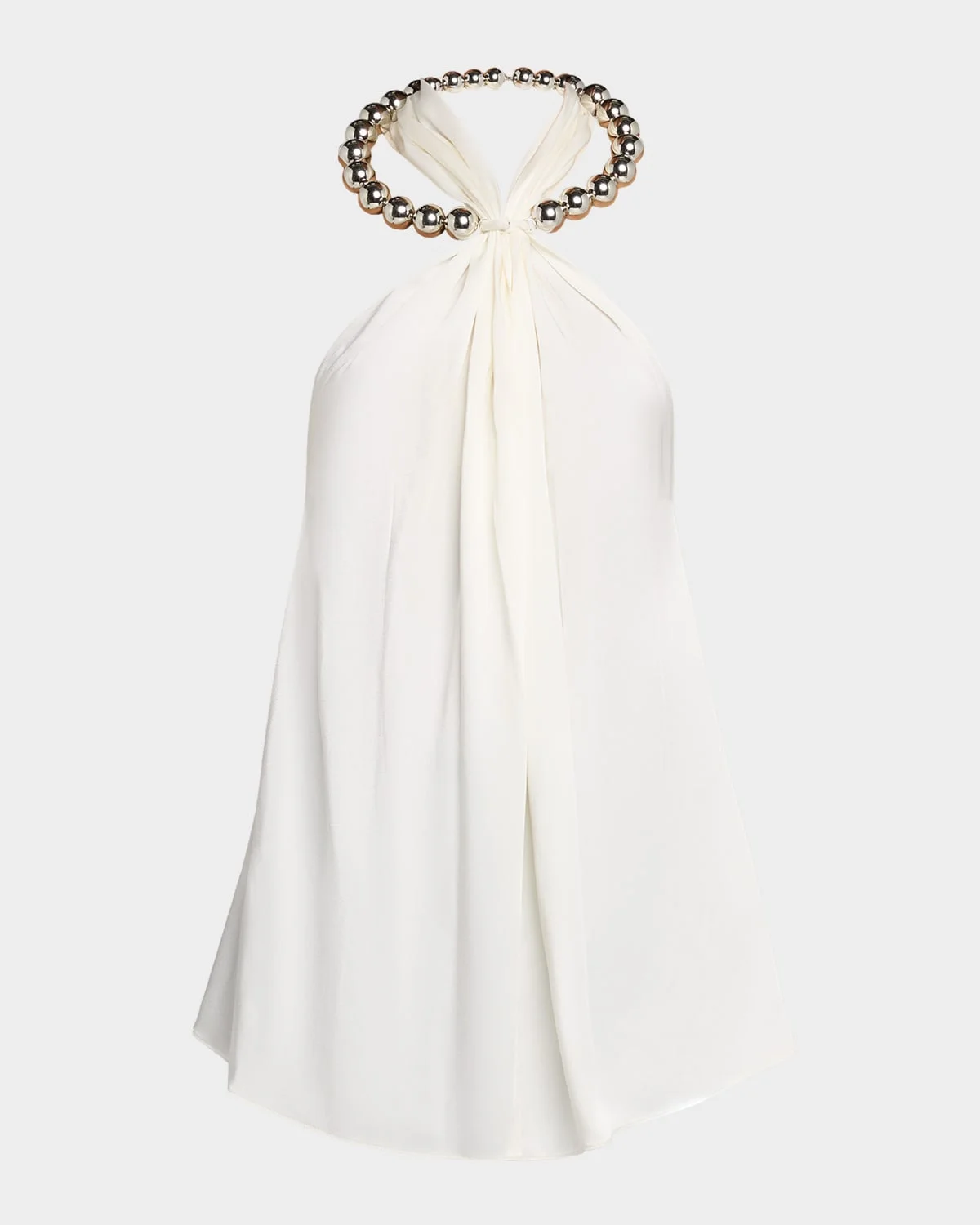 - Stella McCartney top featuring a gathered neckline with silvertone sphere beaded neck embellishment - Halter neckline - Sleeveless - Relaxed fit - Back zip - Acetate/viscose - Dry clean - Made in Italy