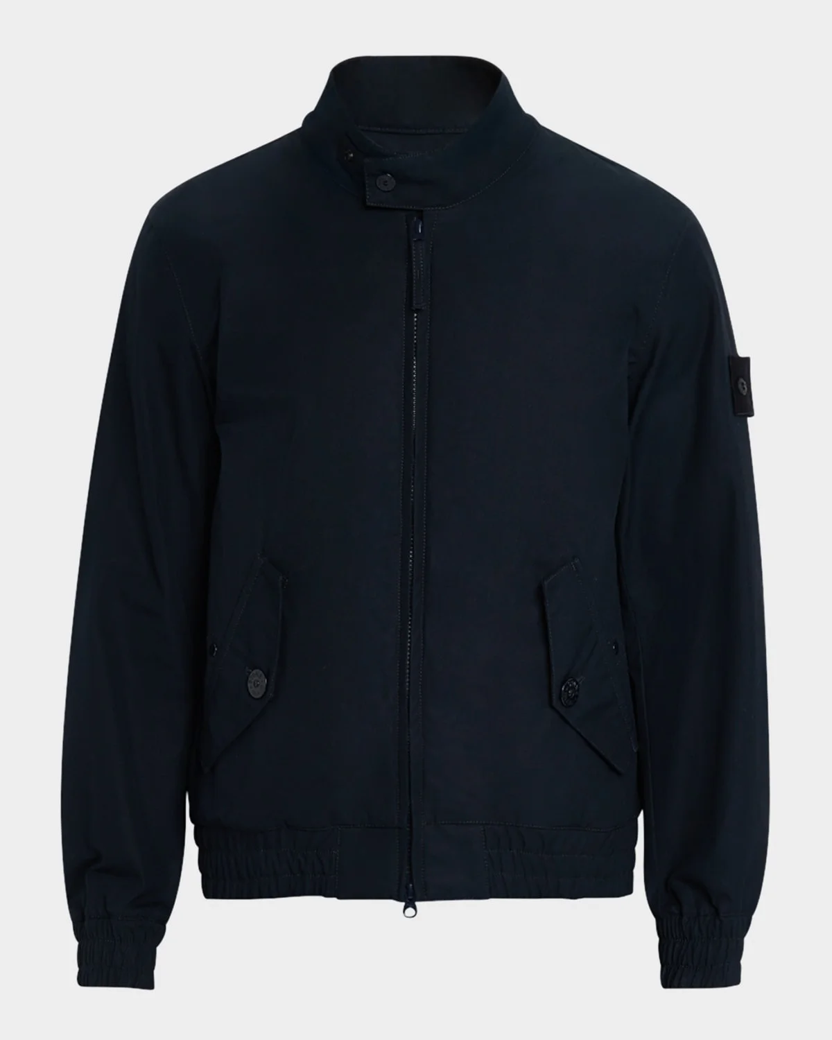 - Stone Island "Ghost" bomber jacket with tonal hardware and logo badge - Buttoned mock neckline - Two-way zip closure - Buttoned flap pockets - Long sleeves - Elasticized cuffs and hem - Cotton - Made in Albania