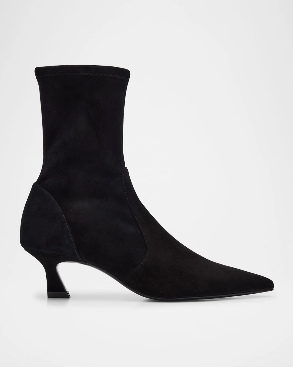 - Stuart Weitzman "Vinnie" booties in stretch calf suede - 2.00 in / 50 mm kitten heel - Pointed toe - Pull-on style - Leather lining and outsole - Professional cleaning recommended - Made in Spain