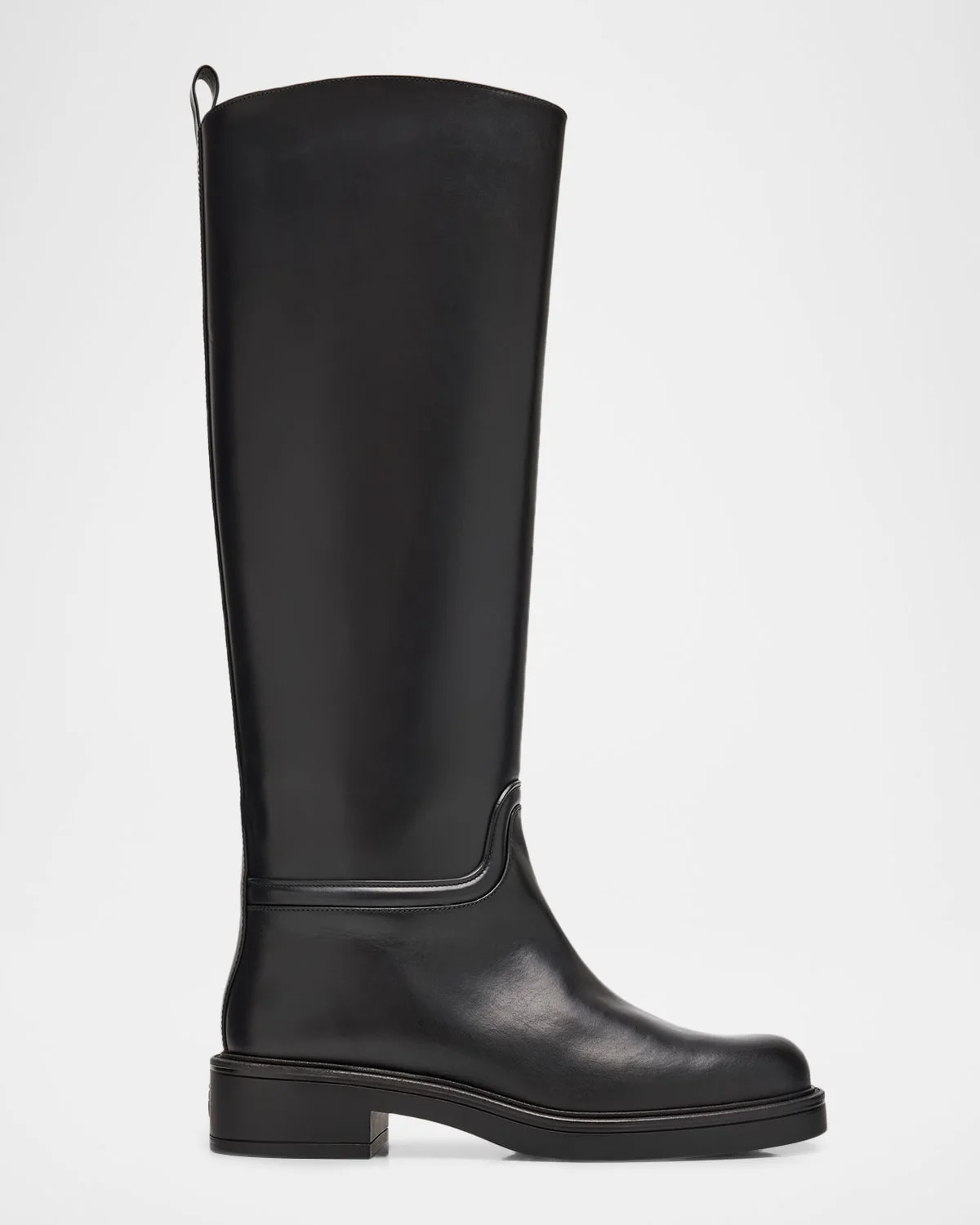The "Celia" kneehigh riding boots by Stuart Weitzman are crafted from smooth calfskin leather 1.25 in / 30 mm block heel Round toe Pullon style Leather lining Lightweight, sturdy TPU outsole Professional cleaning recommended Made in Spain