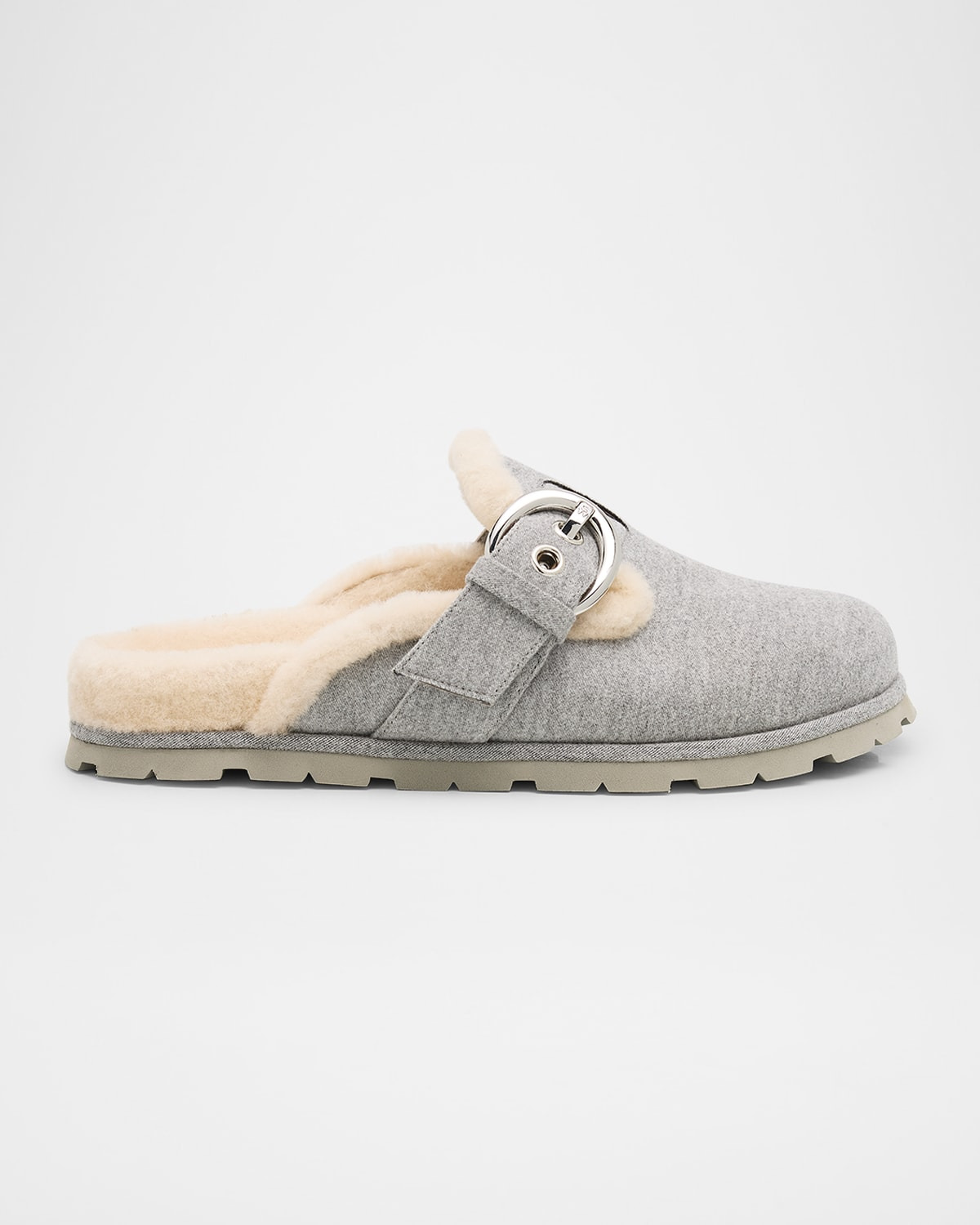 Chrystie Shearling-Lined Flannel Mules