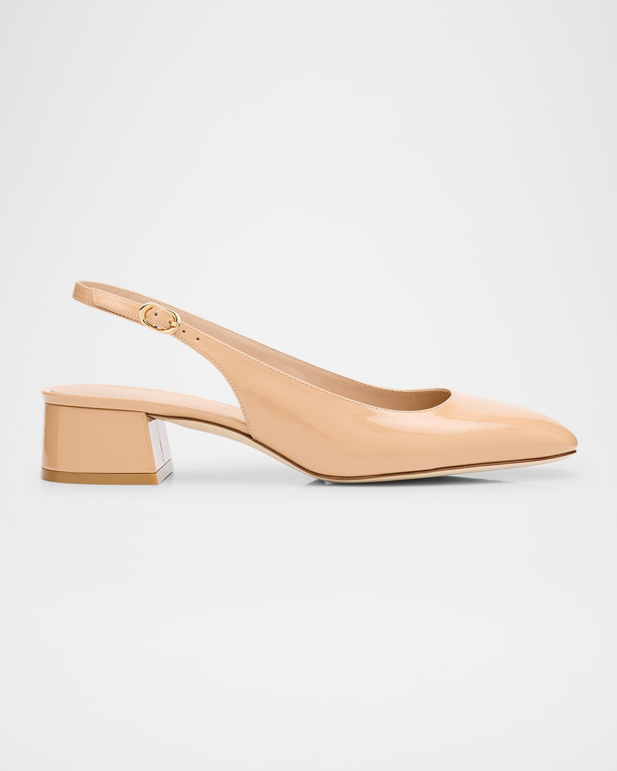 - Stuart Weitzman "Maeve" glossy patent leather ballerina pumps - 1.38 in / 35 mm block heel - Round toe - Adjustable slingback strap - Lining: Leather - Leather outsole - Professional cleaning recommended, hand wash, spot clean - Made in Spain