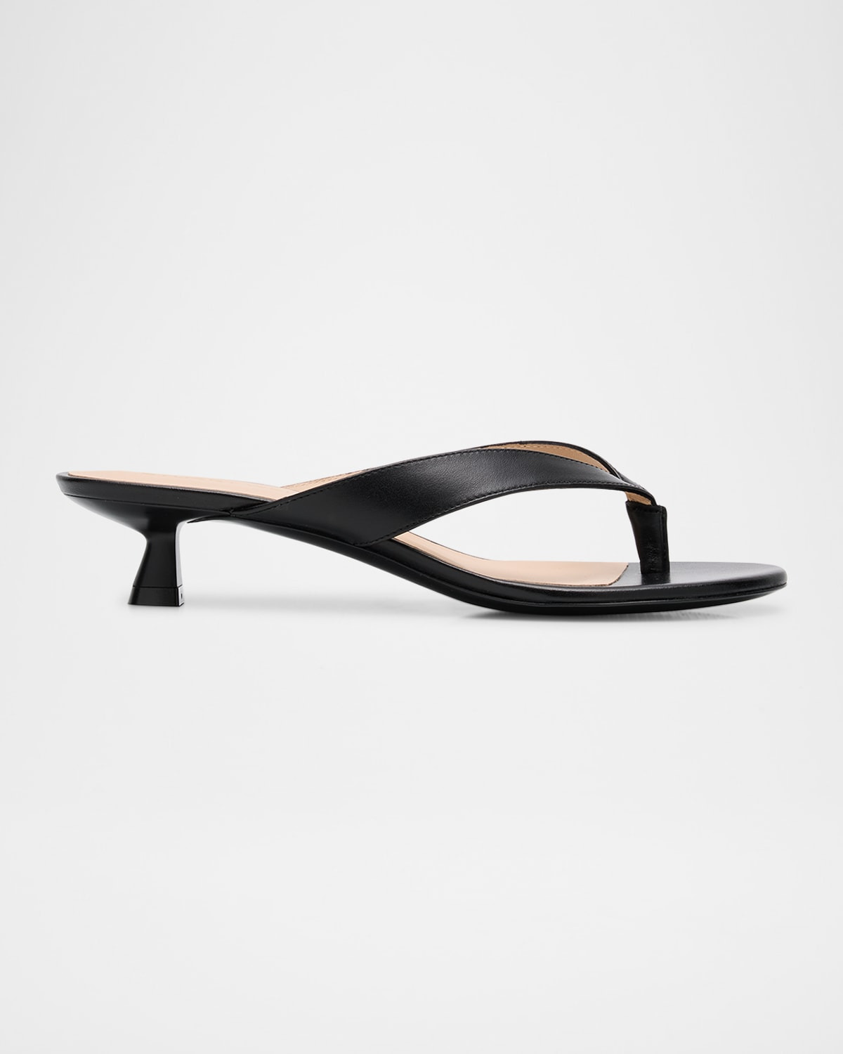 - Stuart Weitzman "Rio" sandals in smooth calf leather - 1.38 in / 35 mm kitten heel - Open toe - Thong strap - Leather lining and outsole - Slip-on style - Professional cleaning recommended - Made in Spain