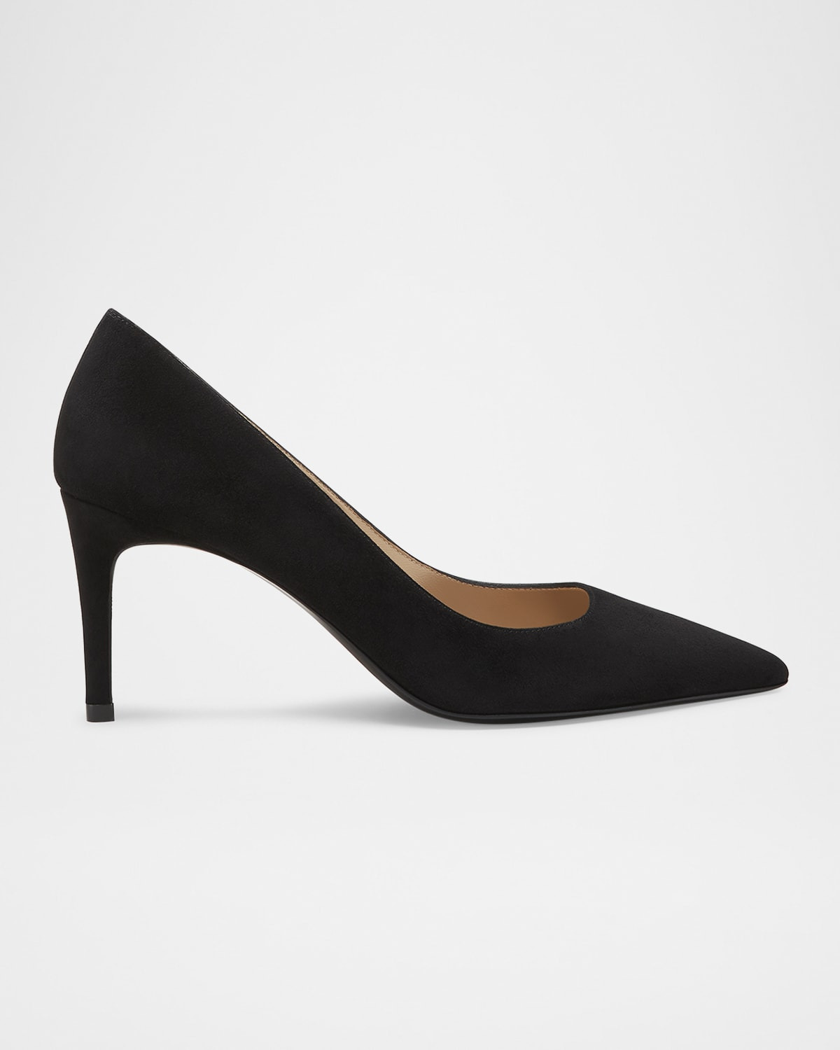 - Stuart Weitzman "Stuart" soft suede classic pumps - 3.00 in / 75 mm stiletto heel - Pointed toe - Slip-on style - Leather outsole - Lining: Leather - Professional cleaning recommended, hand wash, spot clean - Made in Spain