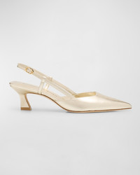 - Stuart Weitzman "Vinnie" metallic leather pumps - 2.00 in / 50 mm kitten heel - Pointed toe - Anchored slingback strap - Lining: Leather - Leather outsole - Spot clean - Made in Spain - Shipping - Direct from Vendor, usually ships within 30 business days.
