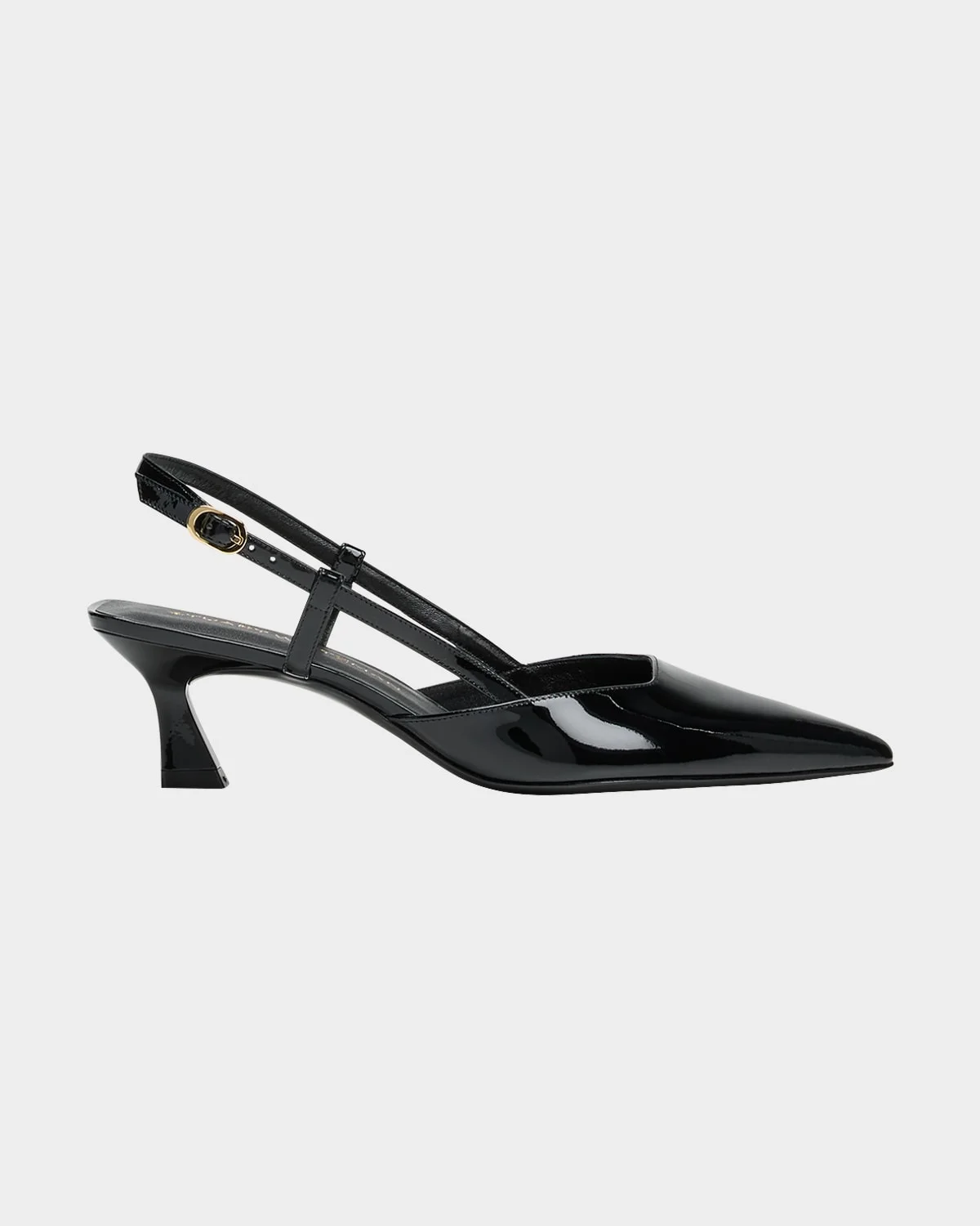 - Stuart Weitzman "Vinnie" patent leather pumps - 2.00 in / 50 mm kitten heel - Pointed toe - Adjustable slingback strap - Leather outsole - Lining: Leather - Spot clean - Made in Spain - Shipping - Direct from Vendor, usually ships within 30 business days.