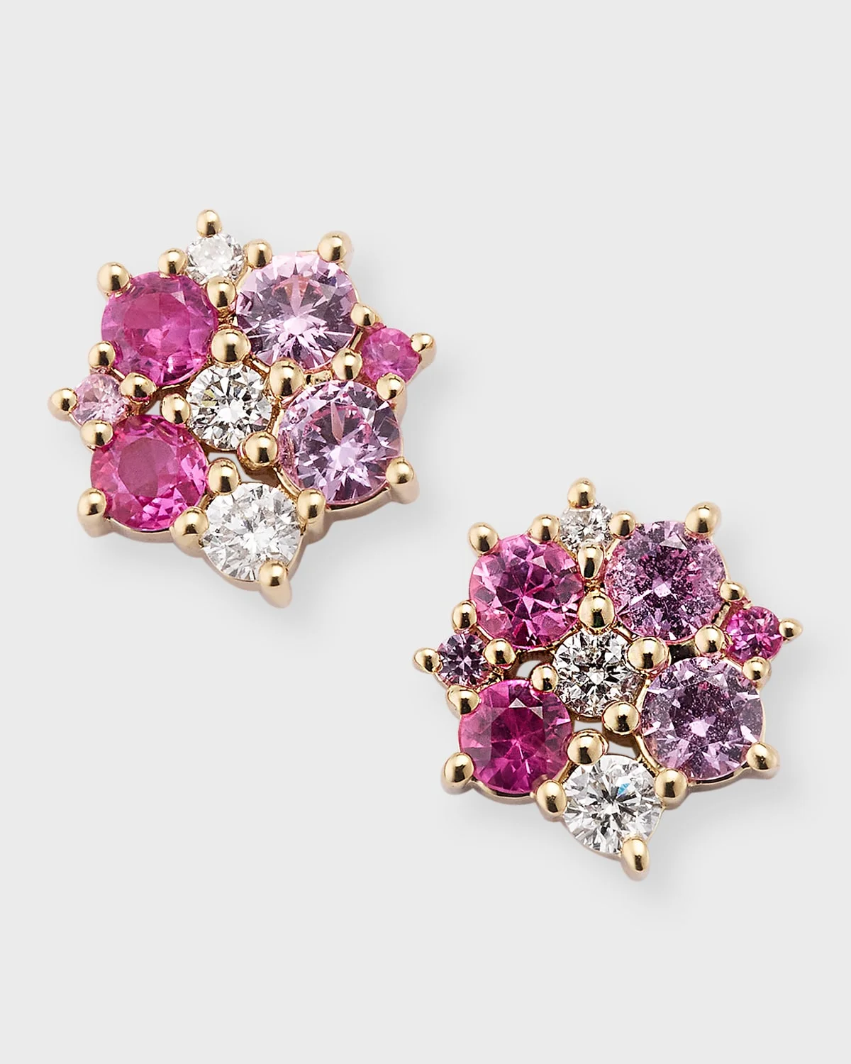 14k Diamond and Pink Sapphire Disc Stud Earrings
