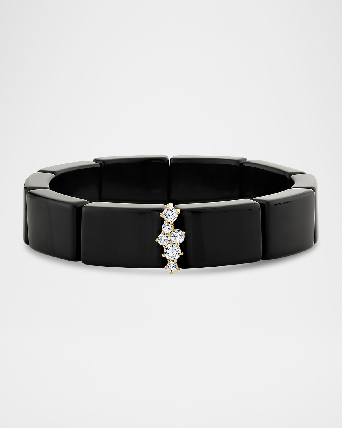 Staggered diamonds are paired with 12mm beads for this Sydney Evan stretch bracelet. The dynamic design of this bead bracelet is full of an exciting allure. Polished 14karat yellow gold Six HI colorless diamonds 0.39 total diamond carat weight 12mm smooth rectangular beads Stretches to fit Imported