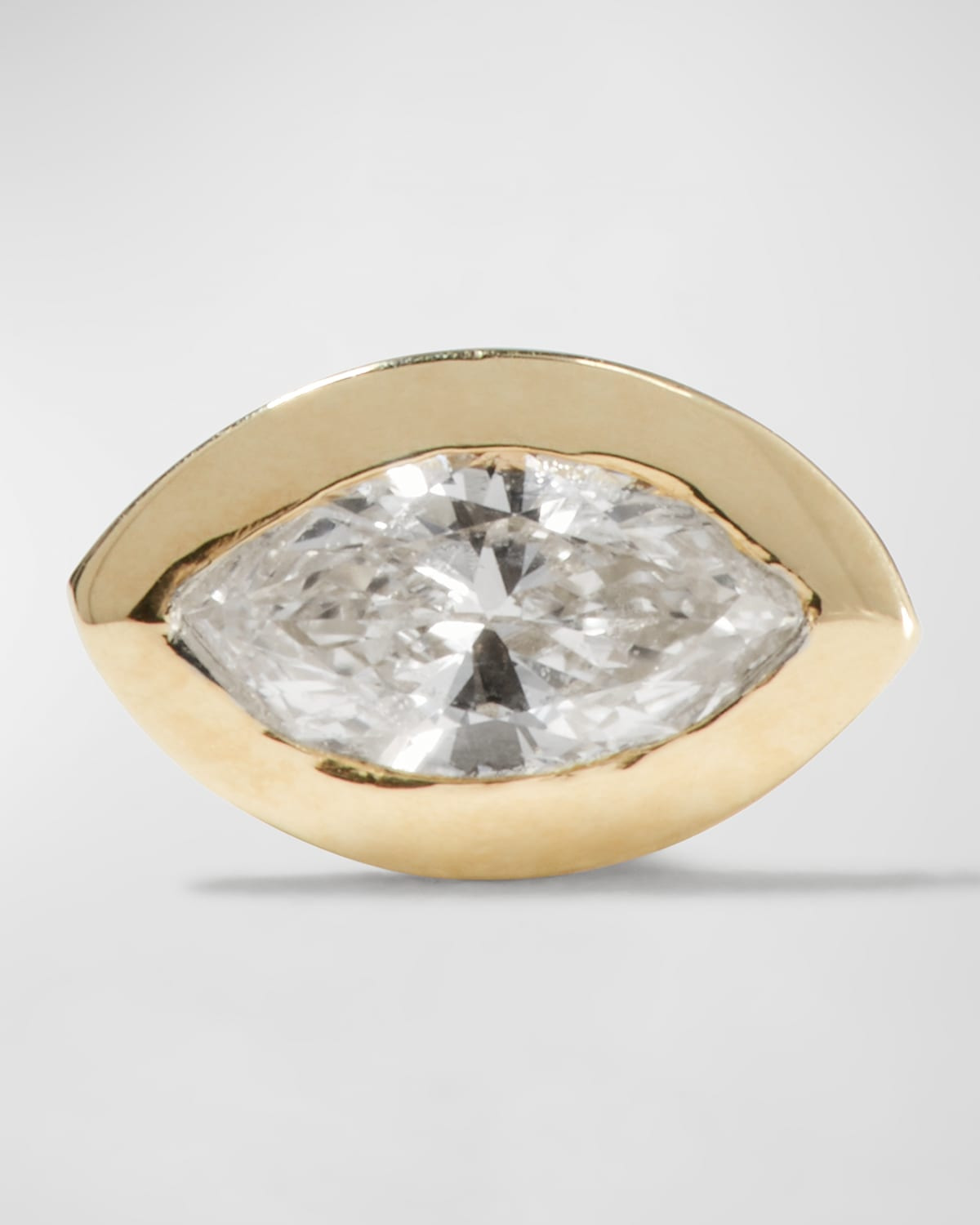 Sydney Evan marquise stud earring. Polished 14karat yellow gold hardware. Bezelset, marquisecut white diamond. 0.16 total diamond carat weight. Post back for pierced ears. Sold individually. Imported.