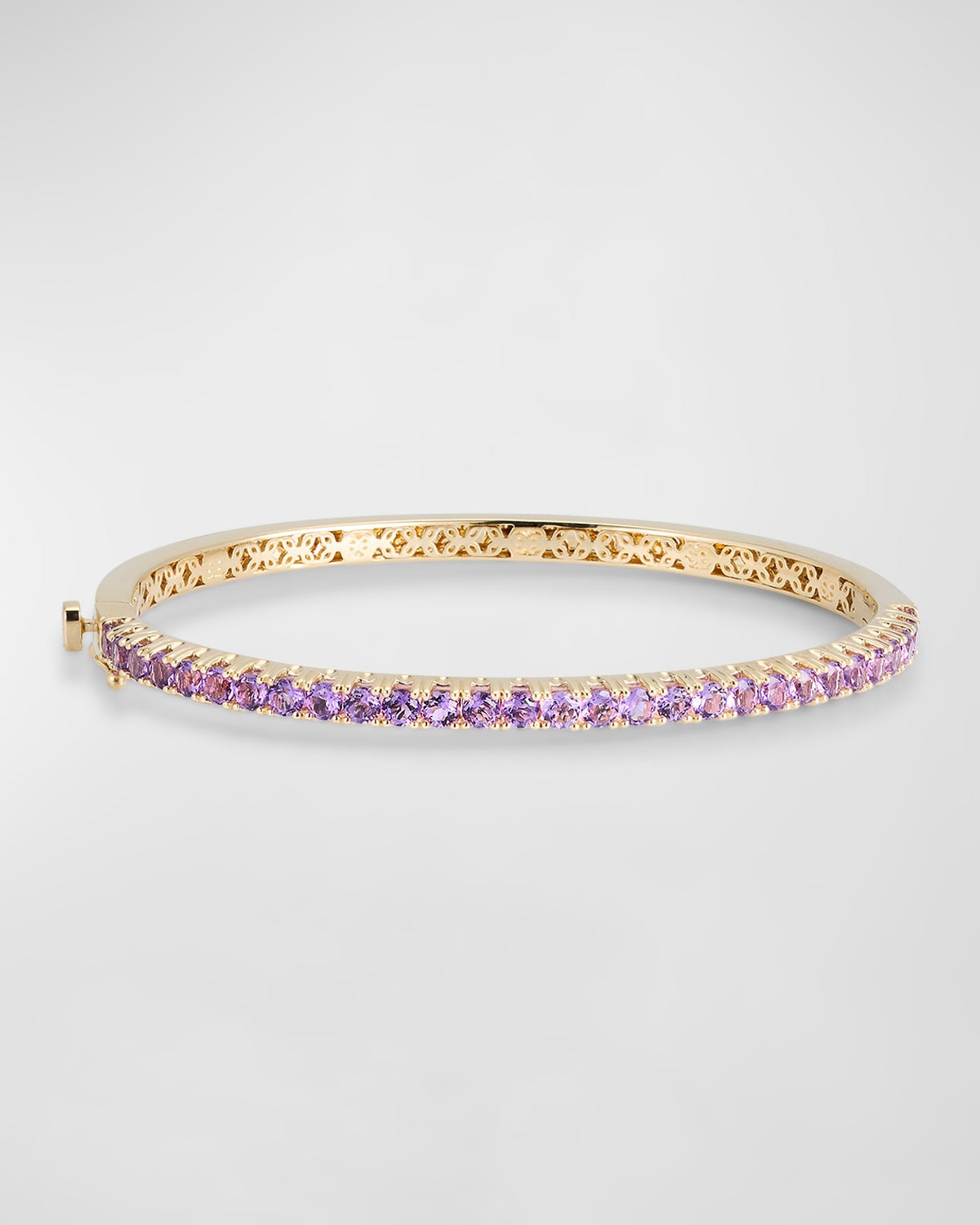 Sydney Evan bangle Approx. 6.25" circumference 14karat yellow gold Amethyst pave 2.70 total carat weight Hinge closure Imported