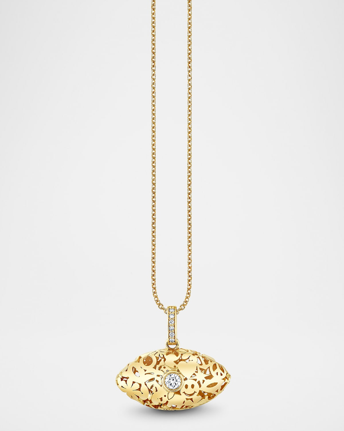 The symbolism runs deep for this Sydney Evan pendant necklace. Not only does this charm resemble the protective evil eye, but other good luck icons create the marquise shape of the eye. The bale and pendant are adorned with diamonds. Approx. 20" length Polished 14karat yellow gold Seven HI colorless diamonds 0.0141 total carat weight Adjustable length Lobster clasp Spot clean, wipe clean Imported