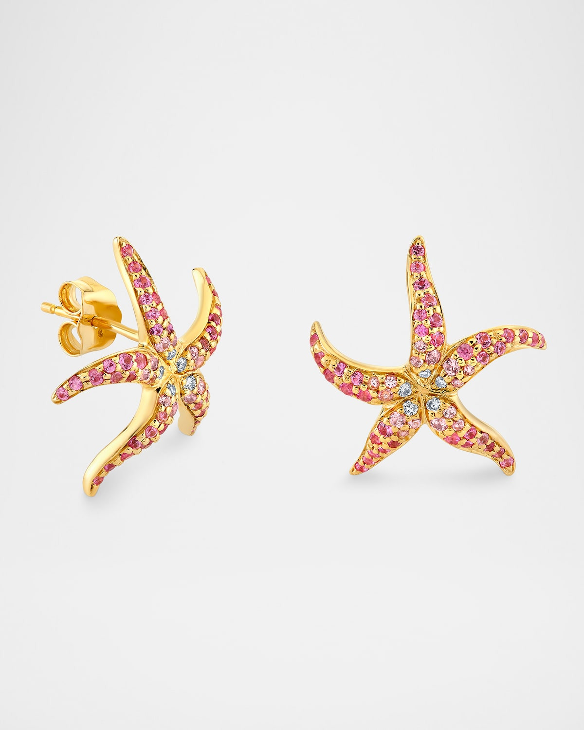 14K Pave Starfish Stud Earrings with Pink Sapphires