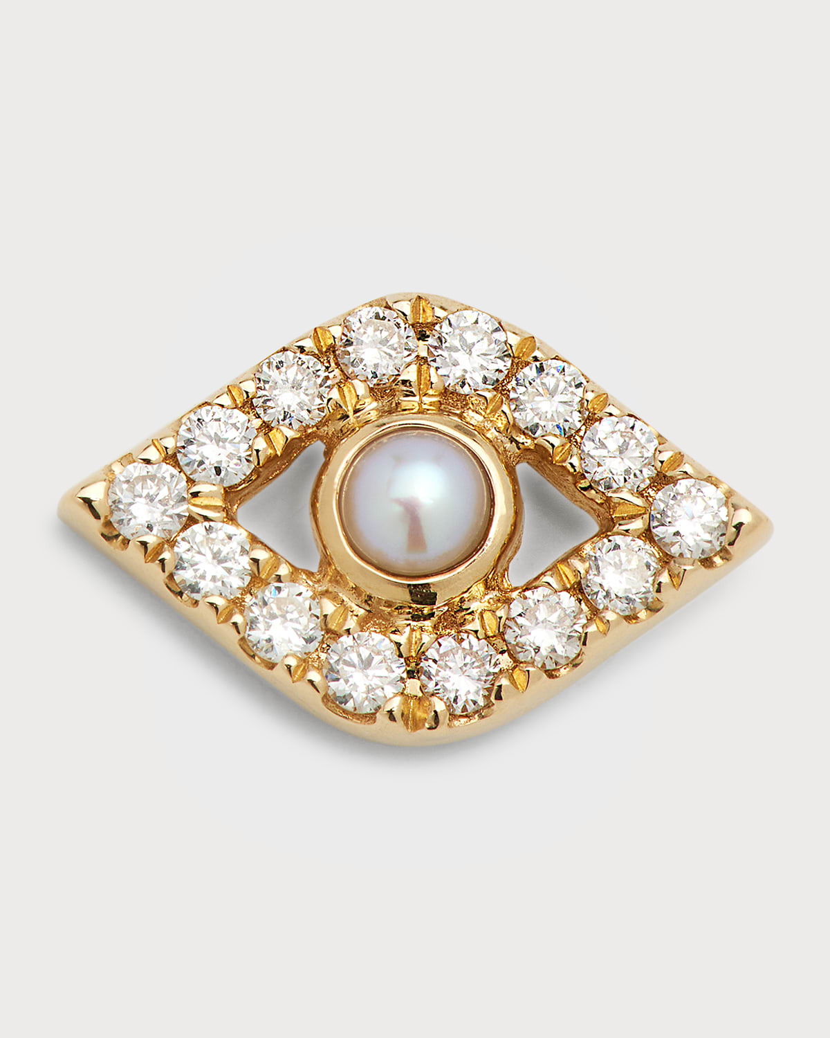14k Pearl Stud Diamond Evil Eye Earring, Single