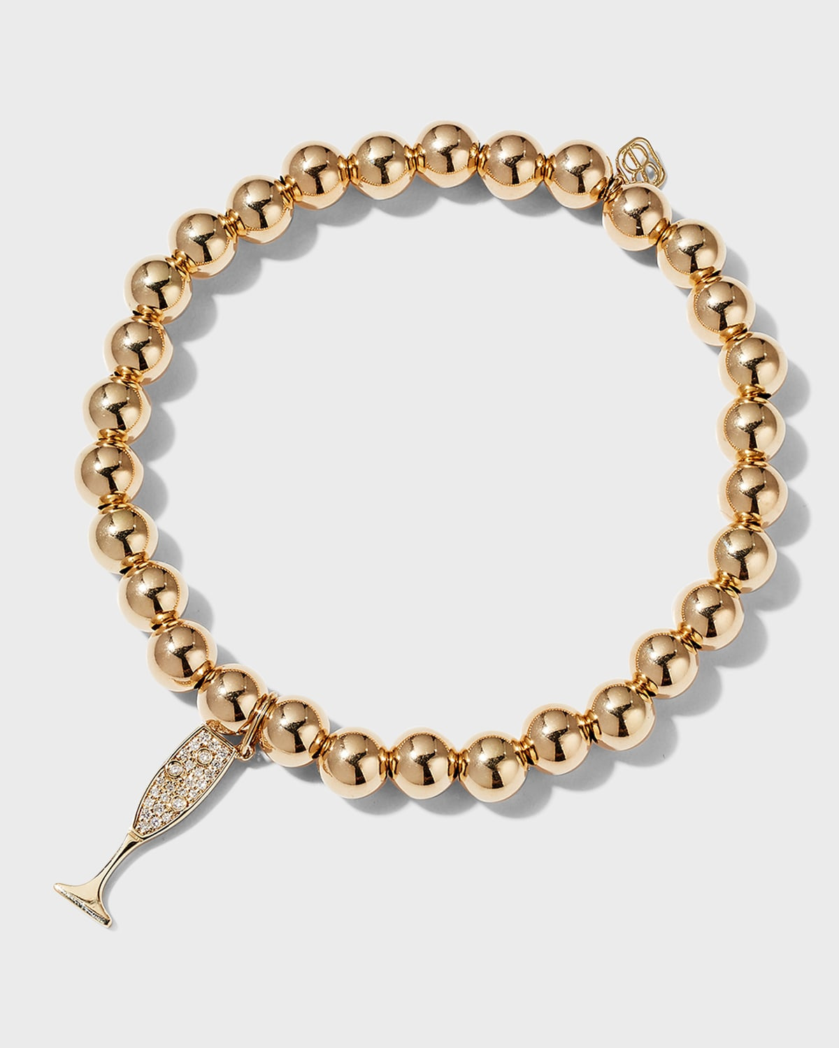 Sydney Evan bracelet Approx. 3/4"H x 1/4"W charm 14karat yellow gold 6mm round beads Diamond champagne flute Total carat weight: 0.078 Slipon style Imported