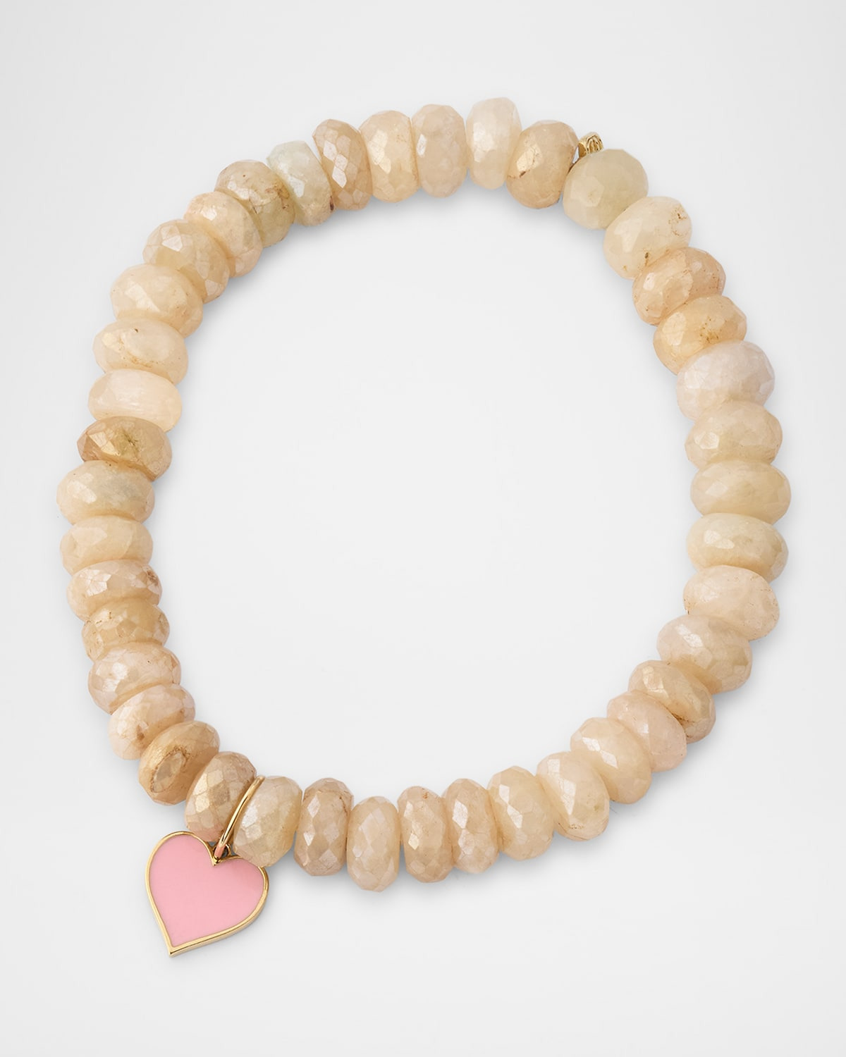 Blush Grapholite Bead Bracelet with Pink Enamel Heart Charm