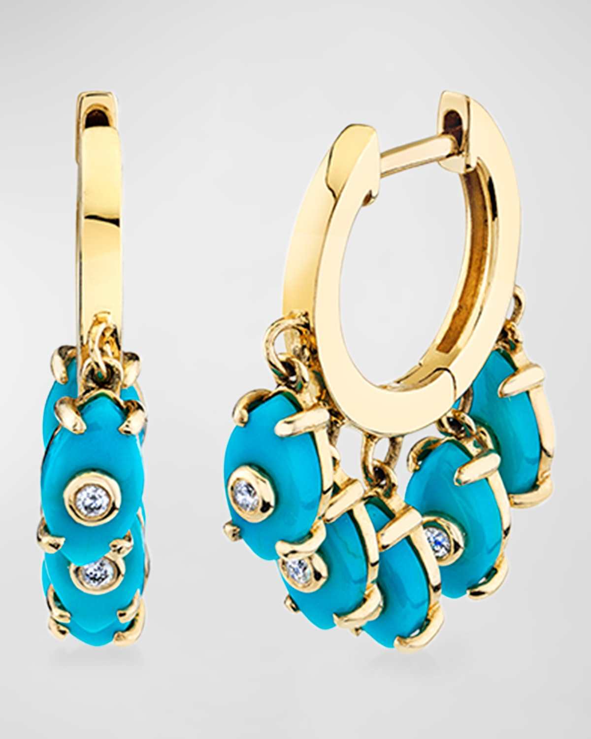 Sydney Evan earring Polished 14karat yellow gold Five turquoise marquise shakers Each shaker has a white diamond Diamond total carat weight: 0.03 For pierced ears Sold individually Butterfly back Imported