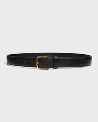 THE ROW classic belt in calf leather. Silver tone square buckle. Leather keeper strap. Adjustable fit. Made in Italy.