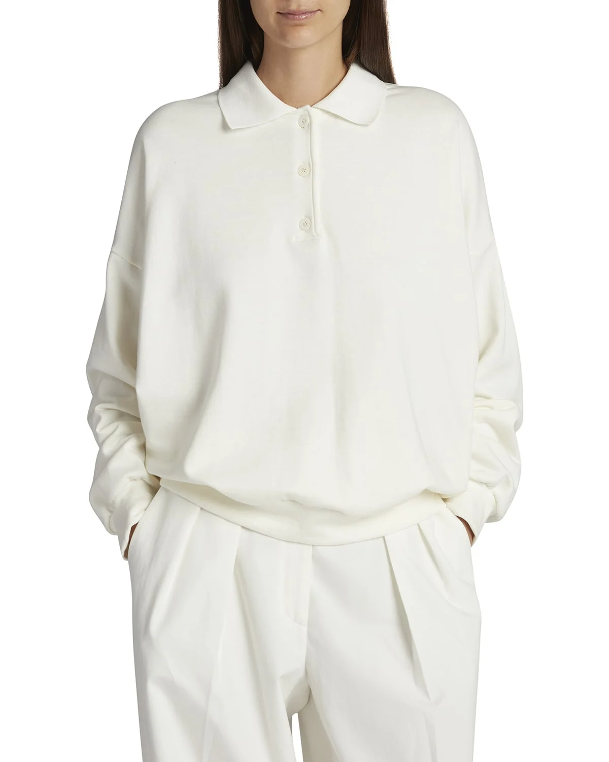 THE ROW "Corzas" cotton polo shirt.Spread collar; three-button placket.Long sleeves.Oversized fit.Banded cuffs and hem.Pullover style.Cotton.Made in Italy.