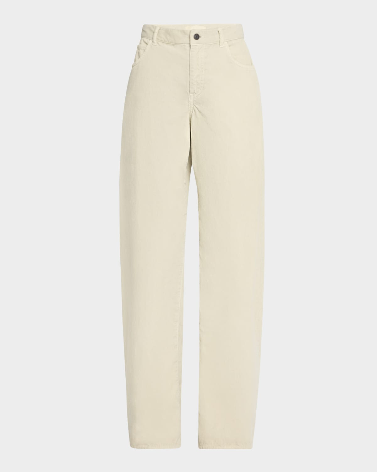 - THE ROW "Eglitta" pants - Mid rise sits high on hip - Five-pocket style - Relaxed straight legs - Full length - Button/zip fly; belt loops - Cotton - Made in Japan