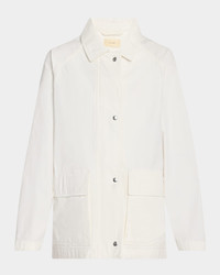- THE ROW "Elodianna" utility jacket featuring a rain shield back detail - Point collar; snap-concealed zip front - Long raglan sleeves - Hip flap pockets; side split pockets - Inner drawstring cinched waist - Loose fit - Hem falls below the hip - Cotton - Made in Italy