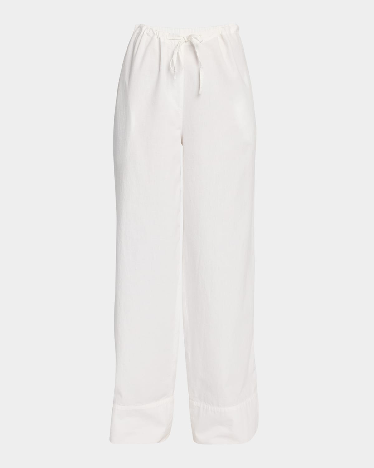 - THE ROW "Enea" lightweight cotton voile pants - High rise - Elastic drawstring waist - Side seam pockets - Wide legs - Full length - Pull-on style - Cotton - Made in Italy