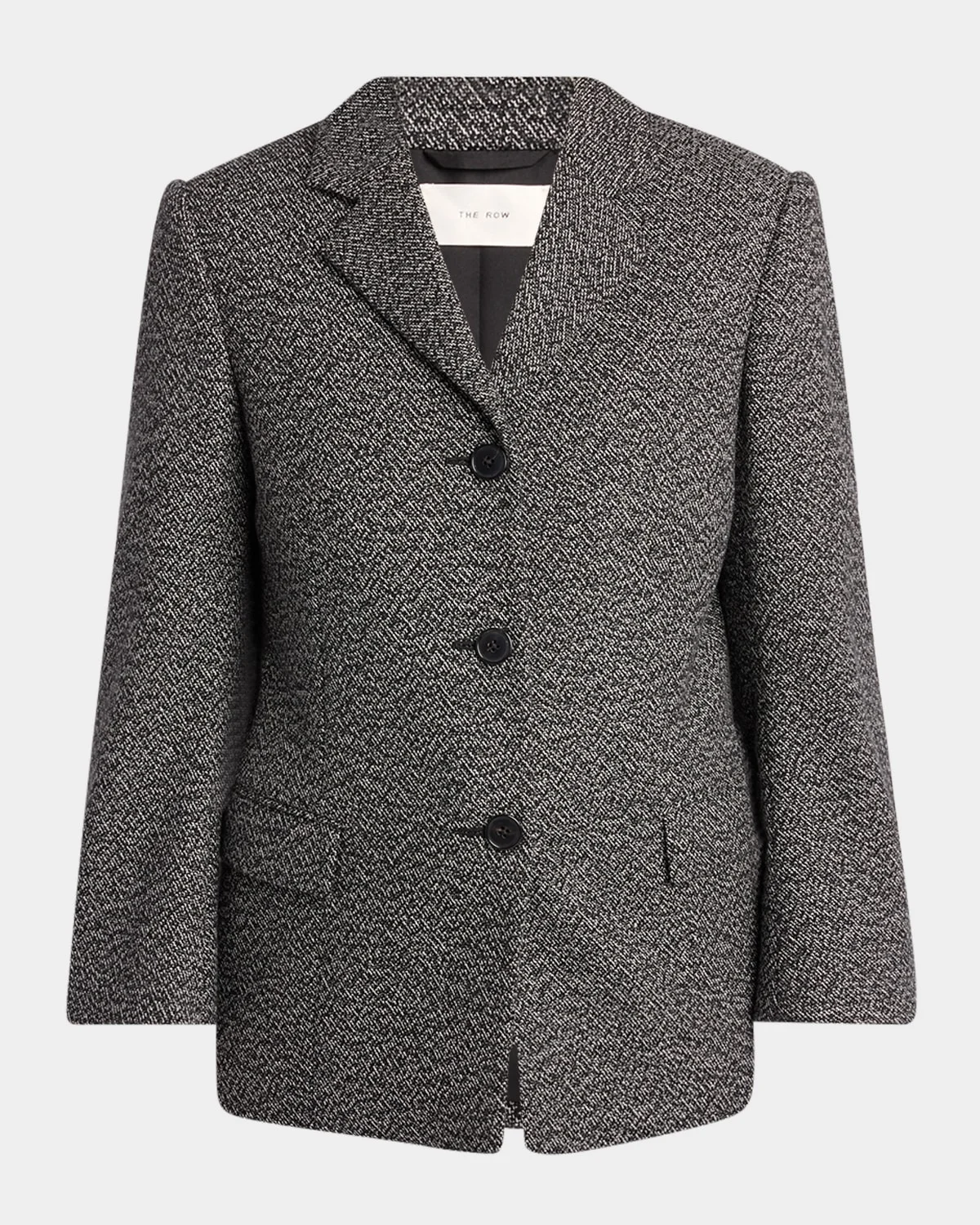 - THE ROW "Eudora" jacket in a cashmere-blend - Notch lapels; single-breasted front - Long sleeves - Hip flap pockets - Straight fit - Hip length - Cashmere/virgin wool/silk - Made in Italy