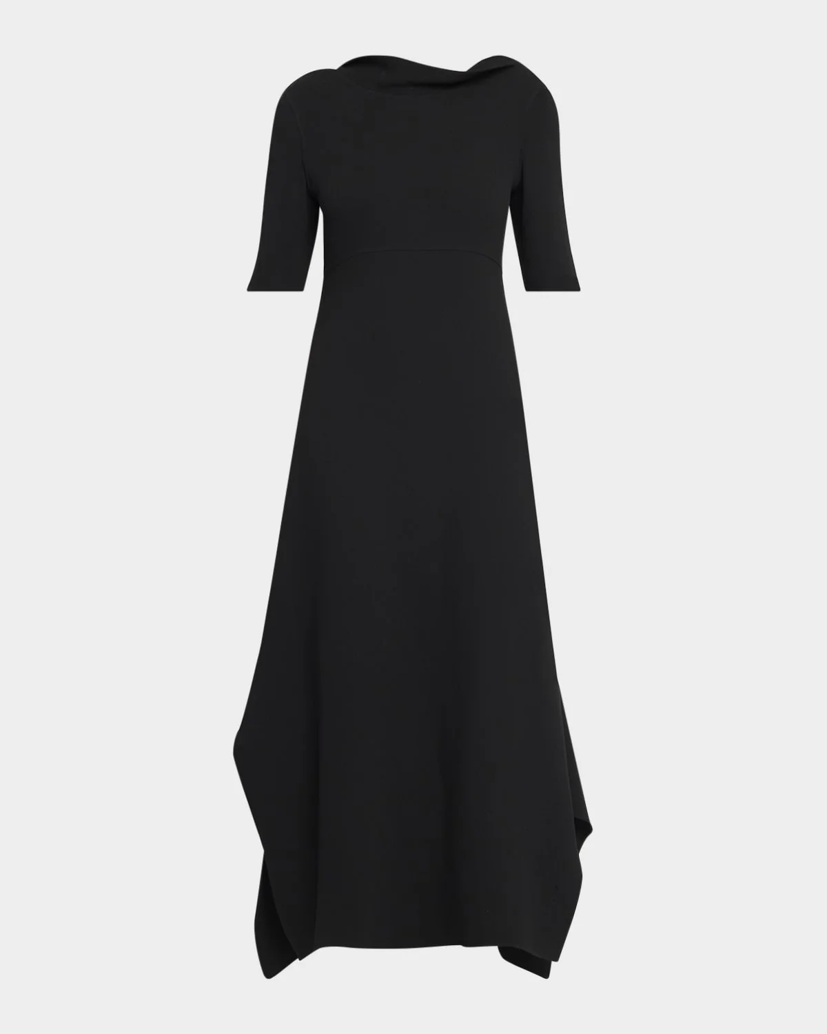 - THE ROW "Faede" crisp silk georgette dress with a folded drape detail at back - Asymmetric neckline; low-cut back - Elbow-length sleeve - Calf length - A-line silhouette - Asymmetric draped side slits - Back zip - Silk - Made in Italy