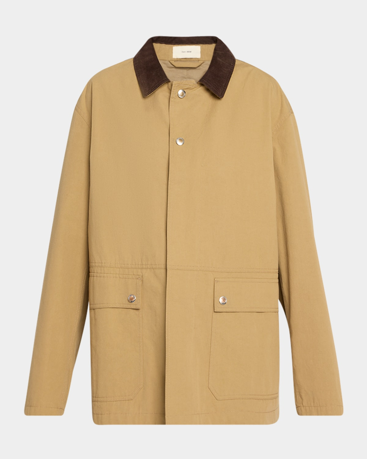 - THE ROW "Frank" barn jacket featuring a contrast corduroy collar - Point collar; snap-concealed front closure - Long sleeves - Front snap-flap pockets; side slip pockets - Oversized fit - Cotton - Made in Italy