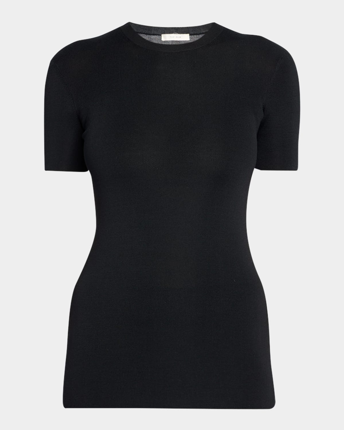 - THE ROW "Jannat" finely knit top - Crew neckline - Short sleeves - Fitted - Pullover style - Silk - Made in Italy