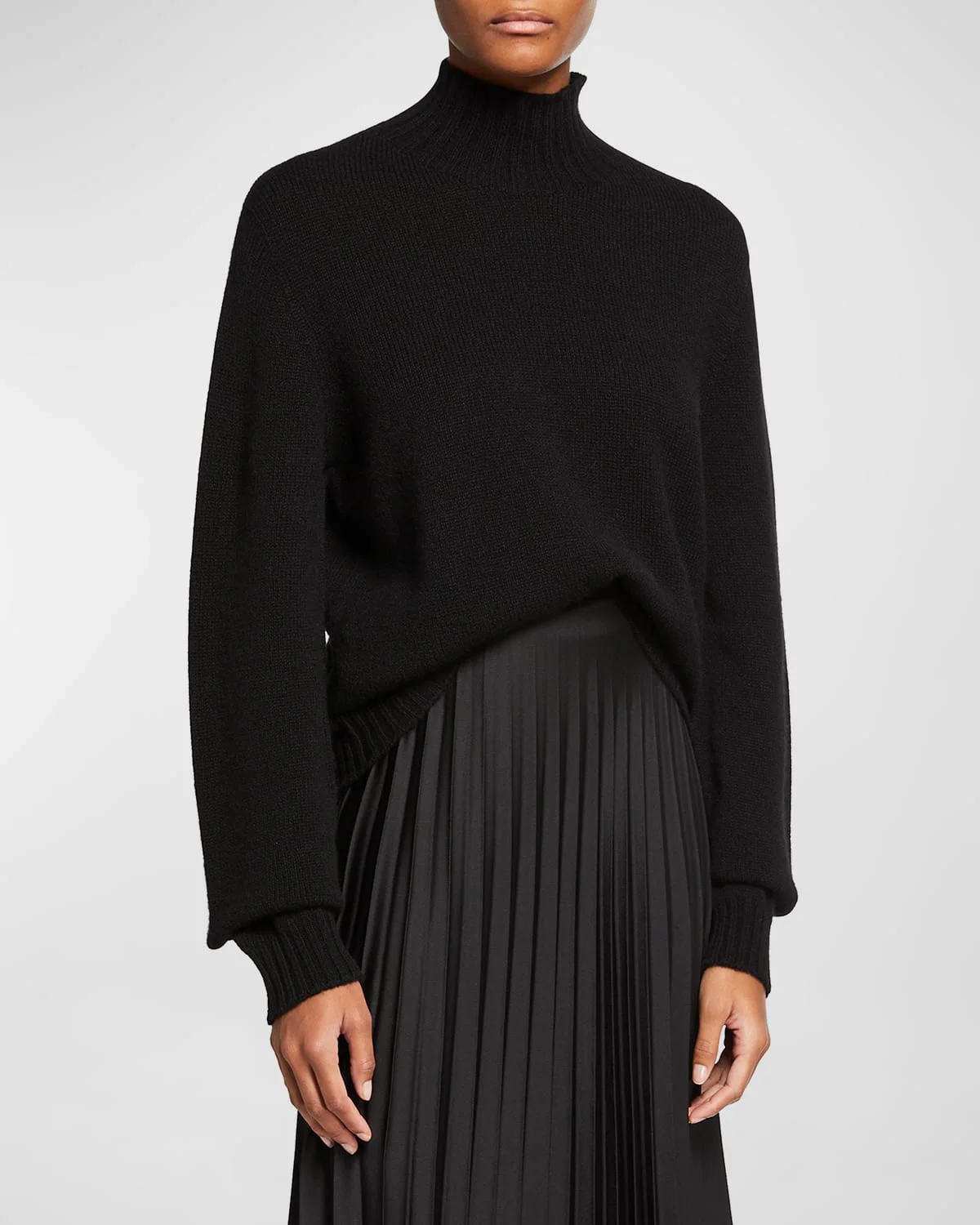 THE ROW "Kensington" knit sweater High neckline Long sleeves Relaxed fit Ribbed trim Pullover style Cashmere Made in Italy
